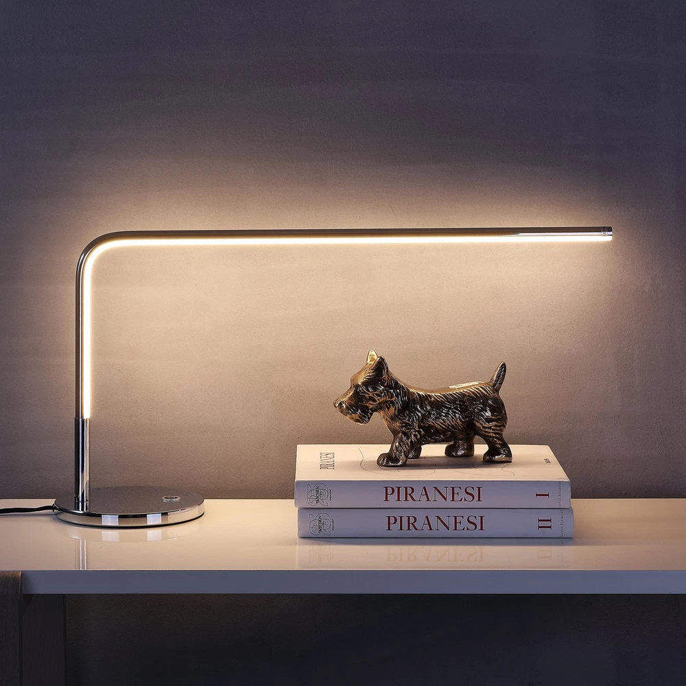 When you're burning the midnight oil, you'll need a desktop task lamp that excels in both form and function. This 15 inch high contemporary style succeeds in both with it's energy-efficient LED bulbs and streamlined design. Finished with a wrapped-silk cord, this style is built for enlightened work. QUALITY CONSTRUCTION: Integrated LED lamps finished with high-end details, soft-white light; weighted base and cool-to-the-touch bulb make this lamp safe for children; ETL Listed and meet 120-volt UL standards for safety and quality SMART, ENERGY SAVING LIGHTING: Integrated LED lighting designs provide uniform, flicker-free reading light; LED components are built into the lamp so they’ll never need replacing; have a lifespan of up to 15 years with normal use SATISFACTION GUARANTEED: Every design is created with uncompromising attention to detail, using only the highest quality components; Based in Soho, New York, designer Jonathan and his talented team create affordable high-end home decor Energy-efficient, slim-profile contemporary LED task table lamp Built-in LED lights, so no bulbs are required