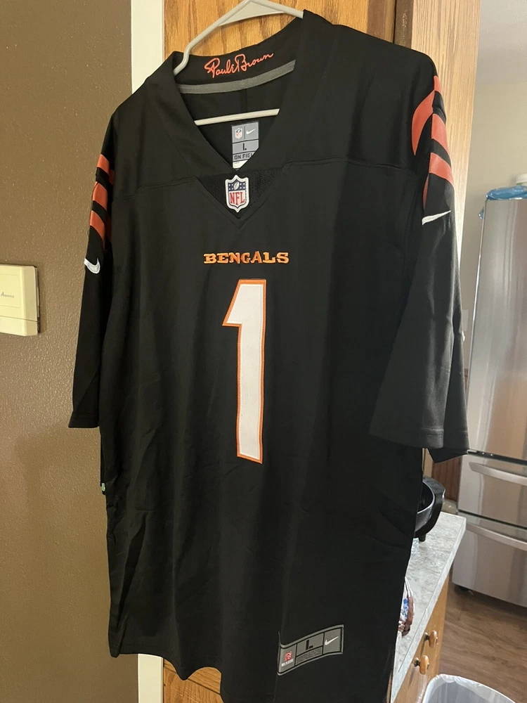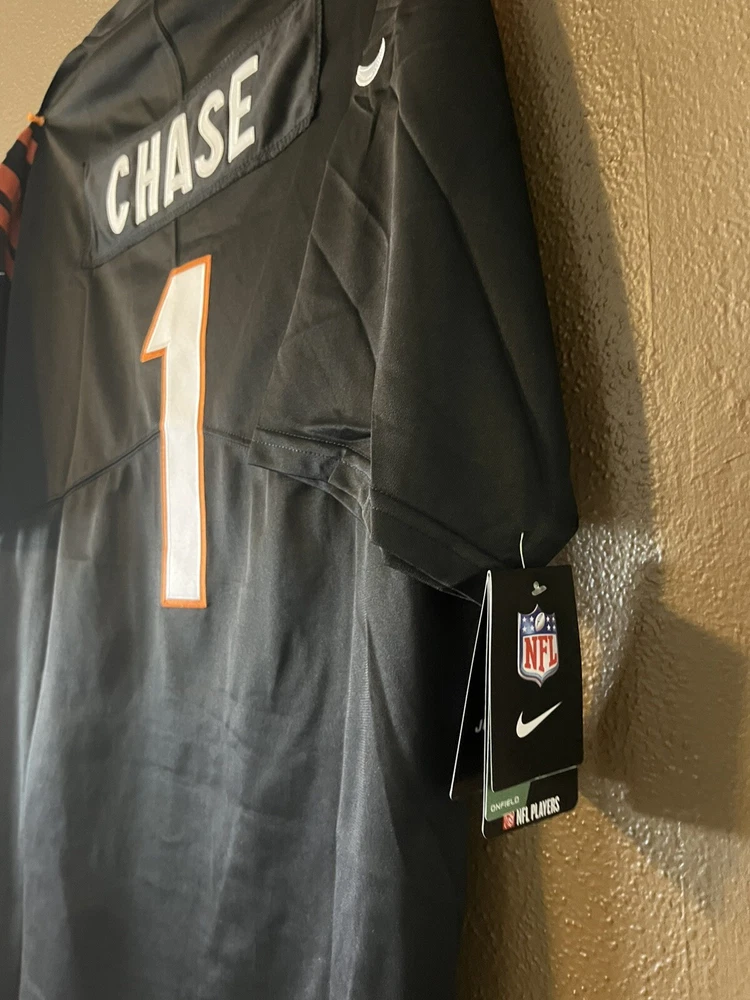 Product:JerseyPre & Post Season:Regular SeasonGender:MenTeam:Cincinnati BengalsPlayer:Ja'Marr ChaseSize:LSport:FootballColor:BlackLeague:National Football League (NFL)