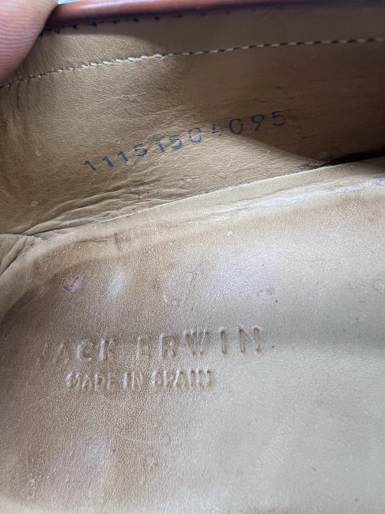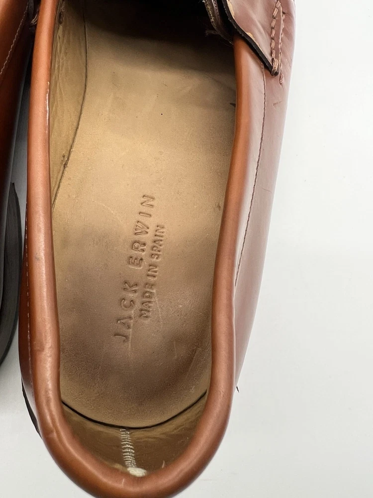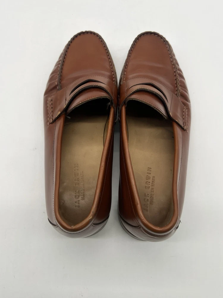 Jack Erwin Brown Leather Slip-On Mens 9.5 Pinch Moc Toe Penny Loafers Shoes. Shoes are in used condition and have signs of wear. Shoes have a little pealing on the top. but shoes are still in good condition. Upper leather is in good condition and clean , inside is clean and the soles are in great condition. Nice comfortable shoes for casual wear. Condition is pre-owned. Shipped with usps priority mail. Sold as pictures. Thank you! Feel free to message me for any questions. Thank you