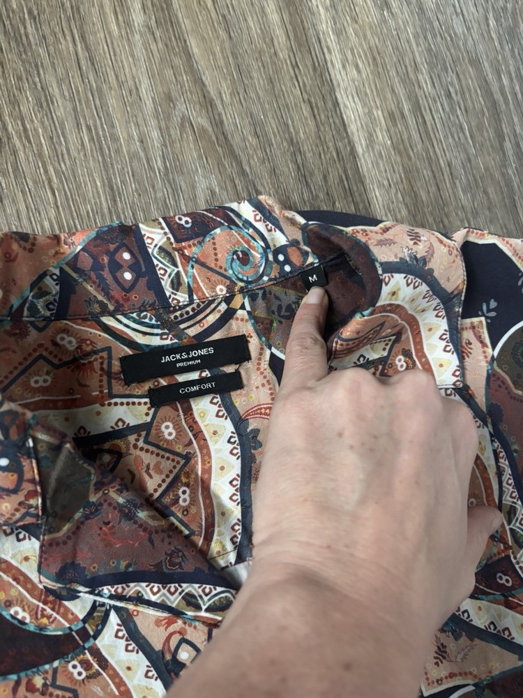 Laid-back style, elevated. This Jack & Jones short sleeve button-up features a sleek brown base with an all-over subtle print, perfect for warm days, casual nights, or vacation fits. Lightweight and breathable with a clean, modern cut.
