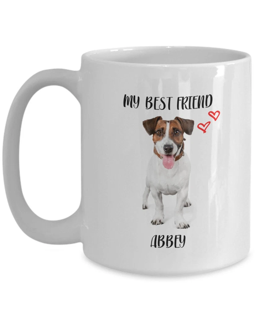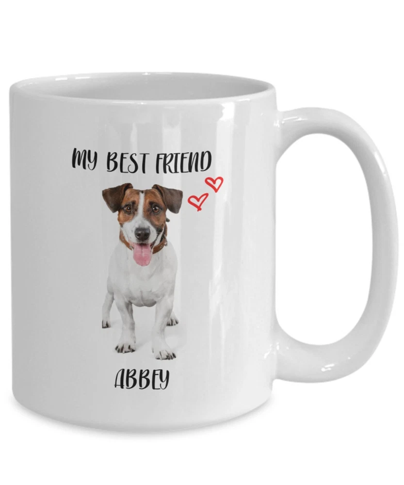 Jack Russell Custom Pet Name Dog Name Personalized Dog Name Mug Coffee Mug Dog Lover Mug Pet Lover Gift Gift Idea Dog Mom Dog Dad Product Details.. This high quality 11oz. ceramic white mug has a premium hard coat that provides crisp and vibrant color reproduction sure to last for years. Perfect for all hot & cold beverages. The highest quality printing possible is used. It will never fade no matter how many times you wash it. Material: 100% Ceramic. Print both sides. Dishwasher and Microwave Safe. High Gloss + Premium White Finish. Printed in the U.S.A. Personalized & Custom. We support personalized and custom mug to add custom, when placing an order, you can add notes to the "order note" in shipping address section. Also you can contact us directly via message. Shipping Info. Ready to ship in 1 to 2 business days, All products are made-to-order and proudly printed in the United States. Shipped by USPS and DHL, You will receive your order in 5-7 days. Replace & Refund. All products are defective during shipping broken, chipped will be replaced free of charge. You are not satisfied with the product, we will refund 100% money to you. If any other issues arise, please do not hesitate to message, we would be more than happy to assist you.