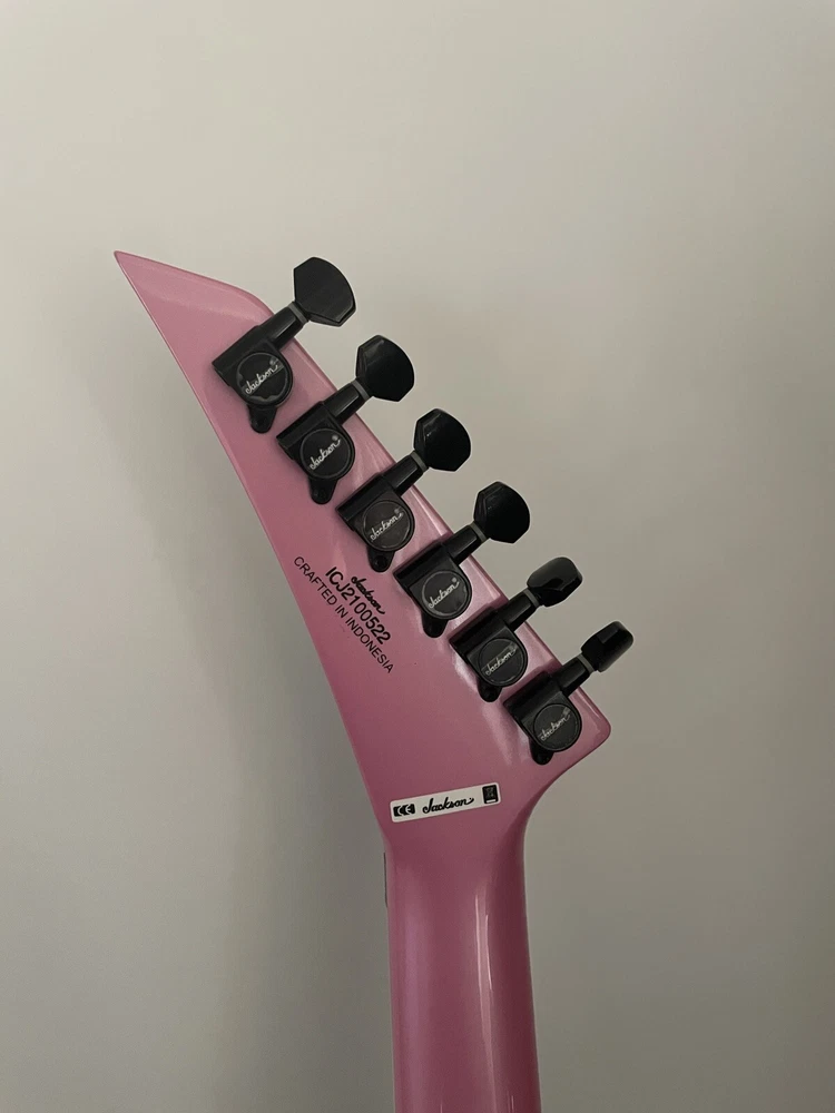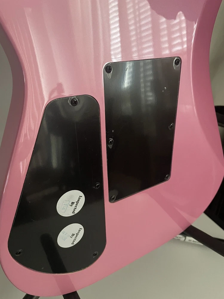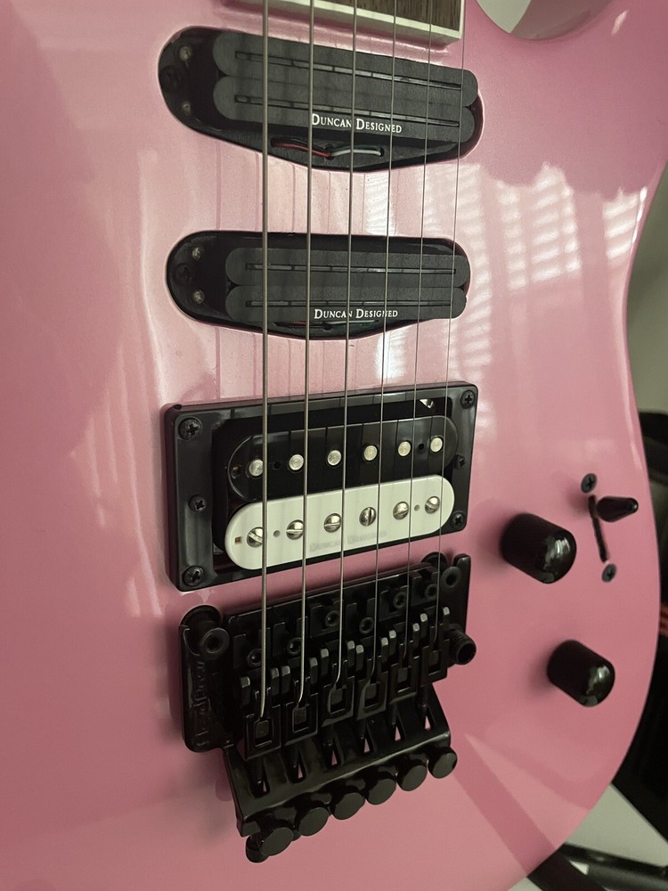 Jackson X Series Soloist SL1X Electric Guitar Laurel Platinum Pink & Case The guitar is Open Box Like New Condition. Includes Jackson Soloist Hard Case. Guitar still has plastic on backplates and tuners. Open Box Excellent Condition. Features: A stylishly contoured poplar body and pure Jackson neck-through-body construction ensure ergonomic comfort during long sets along with monstrous sustain and smooth playing all the way up to the 24th jumbo fret. Graphite-reinforcement rods run through the maple neck, protecting it against environmental depredations, while the ultra-fast 12"-16" compound radius bound laurel fingerboard is built from the get-go for easy chording and riffing near the nut and rapid, fret-out-free leads as you move up the neck. The SL1X comes loaded with a select power trio of Duncan Designed™ pickups; high-output HR-101 Hot Rails single-coil pickups in the middle and neck positions are matched to a powerful HB-103B humbucking bridge pickup for complementary harmonics and highly dynamic responsiveness. Harness the sonic horsepower of these versatile pickups with five-way pickup blade switching and single volume and tone controls. Specifications: Body Body Type: Solid body Soloist Body Material: Poplar Body finish: Gloss Color: Platinum Pink Neck Neck Material: Maple Joint: Neck-Through-Body with Graphite Reinforcement and Scarf joint. Scale length: 25.5" (64.77 cm) Neck finish: Gloss Fingerboard Material: Laurel Radius: 12"-"16 Compound Radius (304.8 mm to 406.4 mm) Fret size: Jumbo Number of frets: 24 Nut width:1.6875" (42.86mm) Electronics Configuration: HSS Neck: Duncan Designed HR-101 Hot Rails Middle: Duncan Designed HR-101 Hot Rails Bridge: Duncan Designed HB-103B Control layout: Individual volume, Individual tone Pickup switch: 5-way blade position. Hardware Bridge type: Floyd Rose Special Double-Locking Tremolo (non-recessed) Tuning machines: Jackson Sealed Die-Cast Color: Black Other Number of strings: 6 string Case: Hardshell case Orientation: Right handed Country of Origin: Indonesia Hardcase included. Please Contact us if you have any questions.