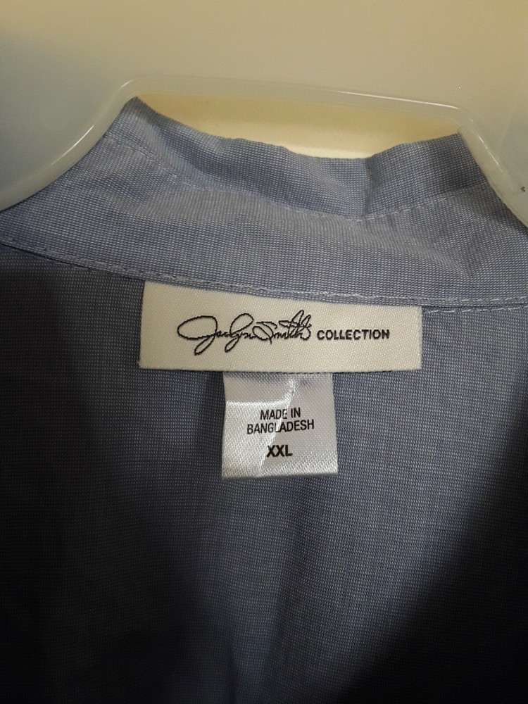 JACLYN SMITH Womens Shirt Size XXL Long Sleeve Blue Button Down Top Blouse Armpit-armpit: 24" Sleeve Length 25" Length: 29" AT Combined Shipment: USA : Highest item shipping cost + $3.00. for each subsequent item.Or, you can purchase as many items as you choose and pay the flat rate of $ for your Priority Mail Large Flat Rate Box which covers your entire order. Please read the disclaimer below. INTERNATIONAL SHIPMENTS: Highest item shipping cost {+ Item weight.} for each subsequent item. Please read the disclaimer below. DISCLAIMER on Shipping Costs: Our intention is to keep our shipping costs as low as possible. However, depending on the item purchased (weight) and the destination, shipping rates can vary; especially 30 Day?s No Questions Asked Returns Policy: Your satisfaction is very important to us. We have a 30 days NO QUESTIONS ASKED returns policy. The item must be returned in the condition in which it was purchased. If there are labels/tags they should not be removed. If they are, the item will be sent back to you. ANY SHIPPING COSTS WILL NOT BE REFUNDED. BOTH WAYS, receiving and any returns. Please contact us for the return shipping address and authorization. ALL COMMUNICATIONS MUST BE IN WRITING & TAKE PLACE THROUGH THE EBAY SITE ONLY. No private direct email correspondence. A customer care rep. will respond to you within 24 hrs (Mon-Fri). Once we have received the merchandise and inspected it, please allow 72 hours for a refund to be issued. NO See my other listings for more great items! We accept PAYPAL. Also we have a virtual terminal with PayPal through which we can accept Visa, MasterCard, Amex, and Discover. If you do not have a PayPal account, it takes virtually minutes to open International shipments: PLEASE DO NOT PAY until we determine your shipping costs. Most of our items also have an International Flat-Rate. Although, if due to the destination or the weight we are unable to honor the rate mentioned in the item?s listing, we will cancel your order and leave you positive feedback. Usually we use the US Postal Service. The best international rate for an international shipment is First Class (up to 4 lbs.)If your items exceed 4 lbs. we may pack them into two separate packages (and notify you of this).You still are eligible to take advantage of the combined shipping rates, even if we have packed them into two separate packages. The fees for packaging, shipping, insurance, Customs Duty Charges on international shipments are all the responsibility of the Buyer and are not included in the purchase price. If the item(s) are gifts, we could indicate ?GIFT? on the customs form so you would avoid paying more on duty.