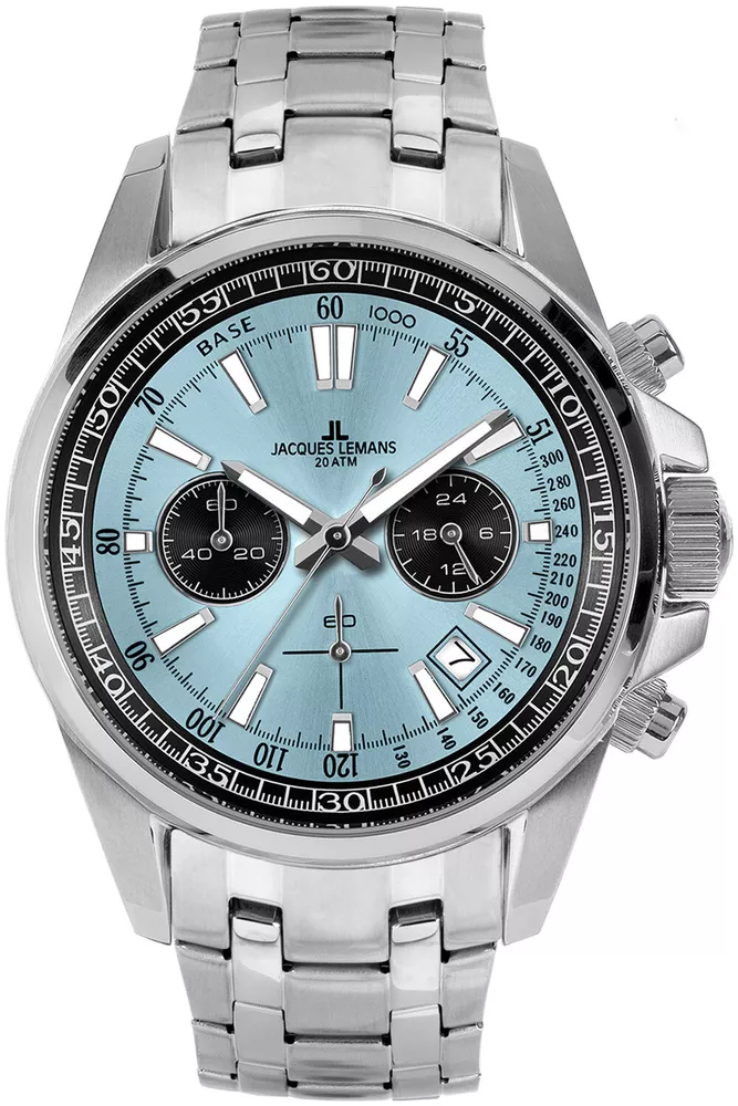 Jacques Lemans Men's Watch Chronograph Liverpool Steel / Light Blue 1-2117ZB The description of this item has been automatically translated. If you have any questions, please feel free to contact us. Jacques Lemans Men's Watch Chronograph Liverpool Steel/Light Blue Chrono 1-2117ZB Trendy men's wristwatch with chrono quartz movement, date with quick correction, stop function up to 60 minutes in 1/1 second increments, 24-hour display, light blue sunray dial, black sub-dials, dial edge with minute track, luminescent hands and indices, black numbers, central Second hand, case made of polished stainless steel, matt strap lugs, screwed case back, polished bezel, screwed crown with Logo, scratch-resistant mineral glass, bracelet made of matt stainless steel with polished stripes, safety folding clasp with logo, waterproof up to 20 bar, width (without crown) 44.5 mm, height 13 mm Features of the Jacques Lemans watch: Department: Men Strap width: 22 mm Strap color: silver Case thickness: 13 mm Case color: silver Case shape: Round Case size: 45 mm Case material: stainless steel Country and region of manufacture: China Maximum wrist circumference: 20.1-21 cm Product type: Men's watches Series: Liverpool Movement: Quartz Clasp: Folding clasp with safety bar Water resistance: 20 bar Dial color: Blue Special features: Chronograph Date display Mineral glass Screw-down crown You can find the large selection of Jacques Lemans watches in the uhrcenter eBay Shop: Jacques Lemans Watches at uhrcenter Information according to ElektroG You are legally obliged to return old electrical appliances. Old electrical appliances must not be disposed of in household waste, but must be collected separately. For this reason, electrical appliances are marked with the crossed-out garbage can. The substances contained in old electrical appliances can be reused. Please separate batteries, accumulators and lamps that are not enclosed in the old electrical device before handing it in. We are legally obliged to take back old electrical devices free of charge. You can return your old electrical appliance to us free of charge when you purchase a comparable new electrical appliance. When we deliver the new electrical appliance, we will collect the old appliance free of charge. This free collection is limited to waste equipment in the categories of heat exchangers, screens, monitors and equipment containing screens with a surface area of more than 100 square centimetres, and large appliances. Regardless of whether you purchase a new electrical appliance, you can return an old appliance that is no larger than 25 cm in any dimension to us free of charge. If you would like to return an old electrical device to us, please request a shipping label using the contact details provided in the seller's imprint. Please note that you are responsible for deleting personal data from the devices to be disposed of. Note according to the Battery Act Since our shipments may contain batteries and rechargeable batteries, we are obliged under the Battery Act (BattG) to inform you of the following: Batteries and rechargeable batteries must not be disposed of in household waste; you are legally obliged to return used batteries and rechargeable batteries. Used batteries may contain harmful substances that can harm the environment or your health if not stored or disposed of properly. However, batteries also contain important raw materials such as iron, zinc, manganese or nickel and can be recycled. You can either return the batteries to us after use or return them free of charge to a nearby retailer or municipal collection point or to our shipping warehouse. The sale in sales outlets is limited to the quantities usual for end users and to those used batteries that the distributor has or has had in its range as new batteries. The symbol with the crossed-out garbage can means that you must not dispose of batteries in household waste. Under this symbol you will also find the following symbols with the following meaning: Pb: Battery contains lead Cd: Battery contains cadmium Hg: Battery contains mercury uhrcenter Watches & Jewellery Top Brands Jacques Lemans Men's Watch Chronograph Liverpool Steel/Light Blue Chrono 1-2117ZB Trendy men's wristwatch with chrono quartz movement, date with quick correction, stop function up to 60 minutes in 1/1 second increments, 24-hour display, light blue sunray dial, black sub-dials, dial edge with minute track, luminescent hands and indices, black numbers, central Second hand, case made of polished stainless steel, matt strap lugs, screwed case back, polished bezel, screwed crown with Logo, scratch-resistant mineral glass, bracelet made of matt stainless steel with polished stripes, safety folding clasp with logo, waterproof up to 20 bar, width (without crown) 44.5 mm, height 13 mm Abteilung Herren Armbandbreite 22 mm Armbandfarbe Silber Armbandmaterial Edelstahl Anzeigeformat Chronograph Besonderheiten Datumsanzeige Besonderheiten Mineralglas Besonderheiten Verschraubte Krone Besonderheiten Chronograph Gehäusedicke 13 mm Gehäusegröße 45 mm Gehäusematerial Edelstahl Herstellungsjahr 2020-Heute Herstellungsland und -region China Marke Jacques Lemans Maximaler Handgelenkumfang 20,1-21 cm Modell Liverpool Produktart Armbanduhr Stil Lässig Stil Kleid/Formell Uhrenform Rund Uhrengehäuse-Farbe Silber Uhrwerk Quarz Verschluss Faltschließe mit Sicherheitsbügel Wasserdichtigkeit 20 bar Zifferblattfarbe Blau EAN 4040662179191