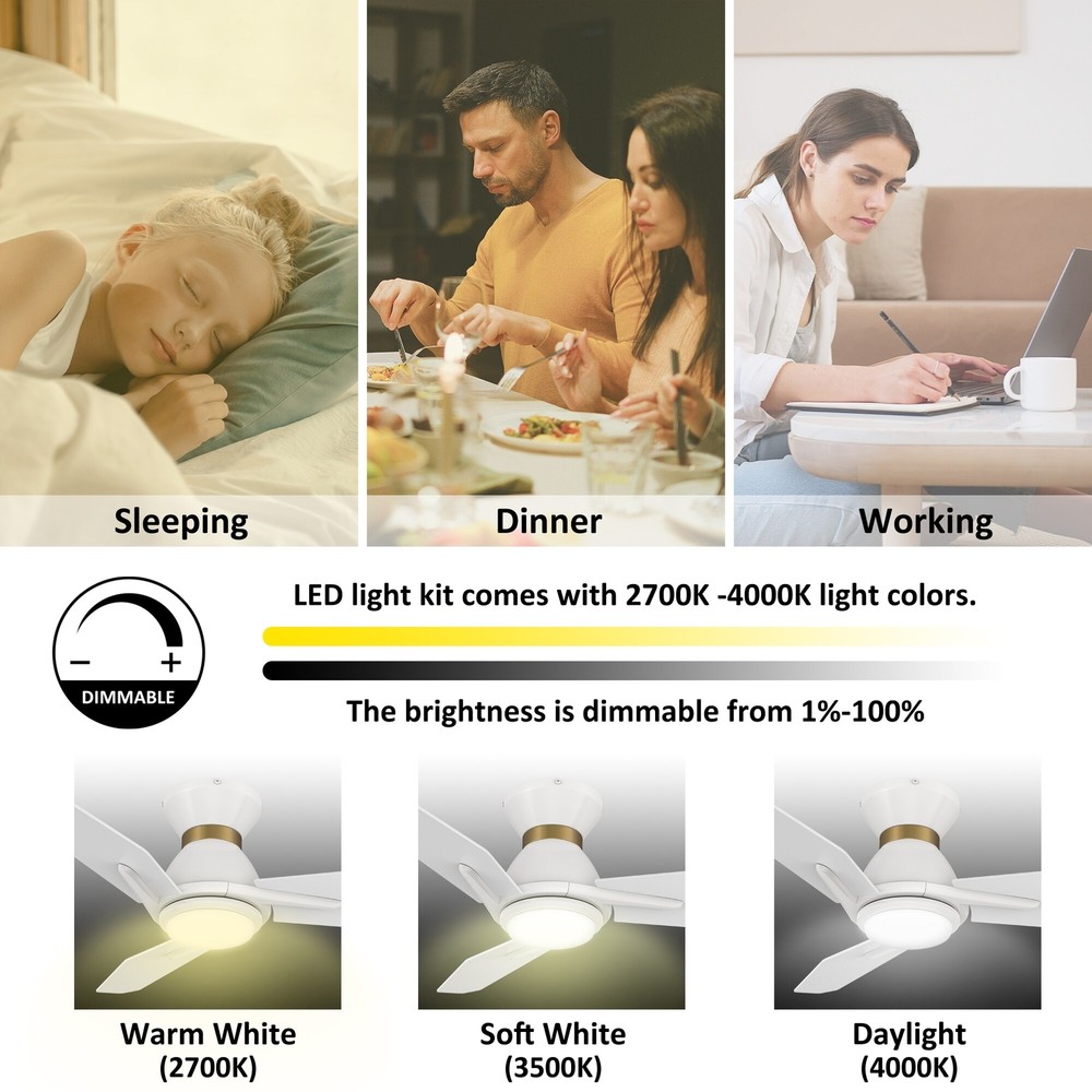andnbsp;Discover the Jaiden 44'' Smart Ceiling Fan, the choice of people who appreciate both style and technology. Its soft modern design in white elevates large indoor living spaces, providing a cool, bright, and stylish ambiance. With integrated 4000K LED cool light, elegant plywood blades, and remote, Wi-Fi, Siri, and voice control options, it's designed for personalized comfort.andnbsp;Salient features: Intuitive Control: Wi-Fi Apps and Voice Activation Remote Perfection: Manage Fan Speed, Light, and Reverse Soundless Efficiency: DC Motor Innovation Seasonal Flexibility: 10-Speed Reversible Motor.lets you switch the fan direction for summer downdraft or winter updraft. Lighting Brilliance: Integrated Warm and Cool LEDs Effortless Installation: Step-By-Step Guide Certified Free Shipping Over $49.99* Details Jaiden 44-inch Indoor/Outdoor Smart Ceiling Fan, Dimmable LED Light Kit and Product Description: andnbsp;Discover the Jaiden 44'' Smart Ceiling Fan, the choice of people who appreciate both style and technology. Its soft modern design in white elevates large indoor living spaces, providing a cool, bright, and stylish ambiance. With integrated 4000K LED cool light, elegant plywood blades, and remote, Wi-Fi, Siri, and voice control options, it's designed for personalized comfort.andnbsp; Salient features: Intuitive Control Wi-Fi Apps and Voice Activation Remote Perfection: Manage Fan Speed, Light, and Reverse Soundless Efficiency: DC Motor Innovation Seasonal Flexibility 10-Speed Reversible Motor.lets you switch the fan direction for summer downdraft or winter updraft. Lighting Brilliance: Integrated Warm and Cool LEDs Effortless Installation: Step-By-Step Guide Certified Safety: ETL for Indoor and Damp Outdoor Use