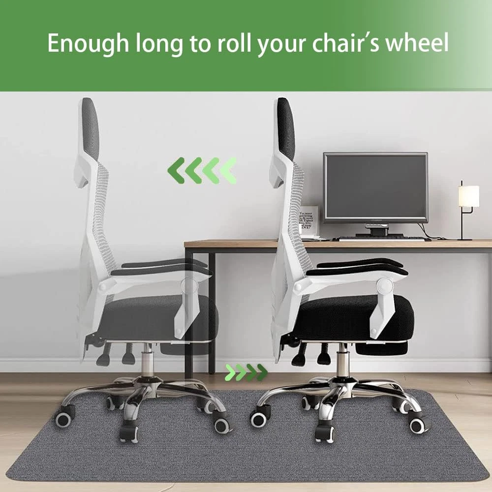 Office Chair Rug for Hardwood Floor, Office Chair Mat Under Desk Low-Pile Rug, Large Rolling Anti-Slip Floor Desk Protector Mat for Home Work (Dark Grey, 36" X 48") 【EFFICIENT FLOOR PROTECTION】Office floor mats reduce the noise of rolling chairs, prevent wheel or floor wear, and keep your floors free of dust. This floor mat is suitable for hardwood floors, tile, laminate, vinyl, concrete and linoleum to extend its life. 【HIGH QUALITY SAFETY MATERIAL】Hardwood floor mats are made of 100% polyester, white non-woven and glued PE film. Safe and environmentally friendly materials are free of BPA and phthalates to protect the indoor environment. Non-folding, non-curling, non-fading, odorless, pet-friendly, non-toxic. 【EASY TO USE】Before use, please make sure the floor seat cushion and floor are completely dry and clean, peel off the film on the back, and press lightly to stick to the floor. It does not leave any residue and the adsorption effect will not diminish when used again. You can also easily clean with a brush, carpet cleaner, vacuum cleaner. 【NON-SLIP AND EASY TO MOVE】The office chair cushion adopts an upgraded version of the adsorption material, which will not change the position of the floor cushion due to the sliding of the chair. The unique surface texture of the chair floor mat allows your office chair casters to move easily and smoothly while performing daily tasks, ergonomic posture and helps to greatly reduce the risk of physical fatigue. 【DIY FREE CUT SHAPES】You can cut the computer chair mat into any shape and size according to your needs to fit the living room chair mat, kitchen table mat or gym equipment mat, etc. The cut floor mat will not affect the use effect.