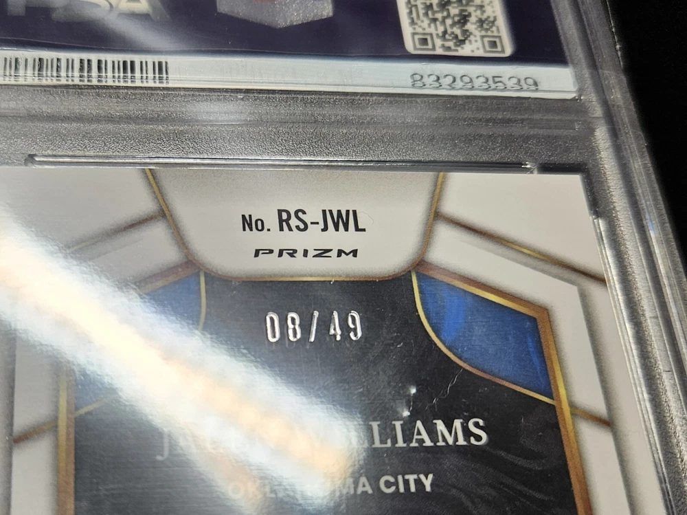 Jalen Williams RC Auto PSA 10/10 == #Match (#8/49) & Color-Blue ROOKIE Gem Mint VERY RARE SSP. The ultimate J-Will card: 1) Is a rookie card. 2) Is an autograph card. 3). A PSA10/10 Gem "Double Dime" 4). Is a color match (Being a BLUE variant and that matching the OKC Thunder). 5). Is the jersey # Match of the set.