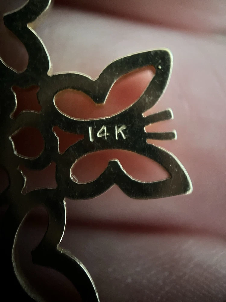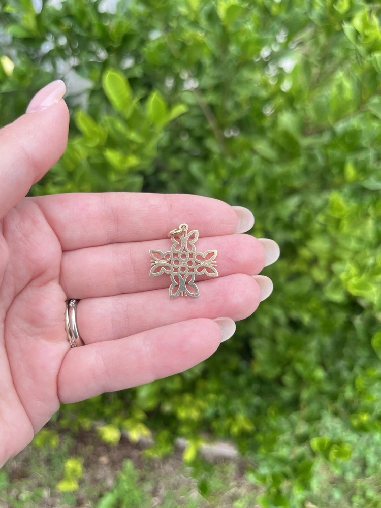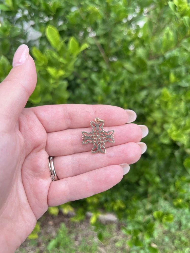 James Avery butterfly cross pendant 14k yellow gold Approximately 2.7 grams Approximately 20mm wide (Item is preowned, wear and tear may be present such as blemishes, scratching, or imperfections. Item may need buffing and/ or polishing. All sales final)