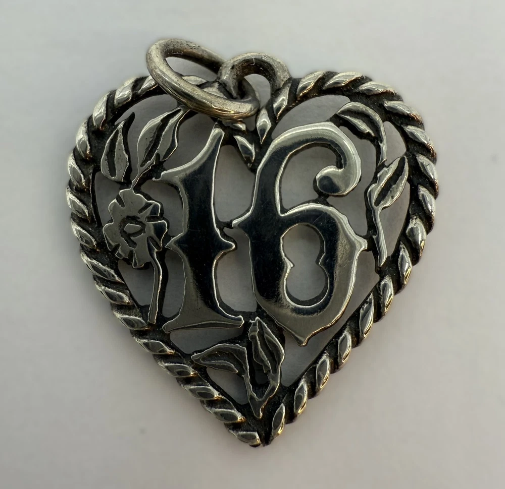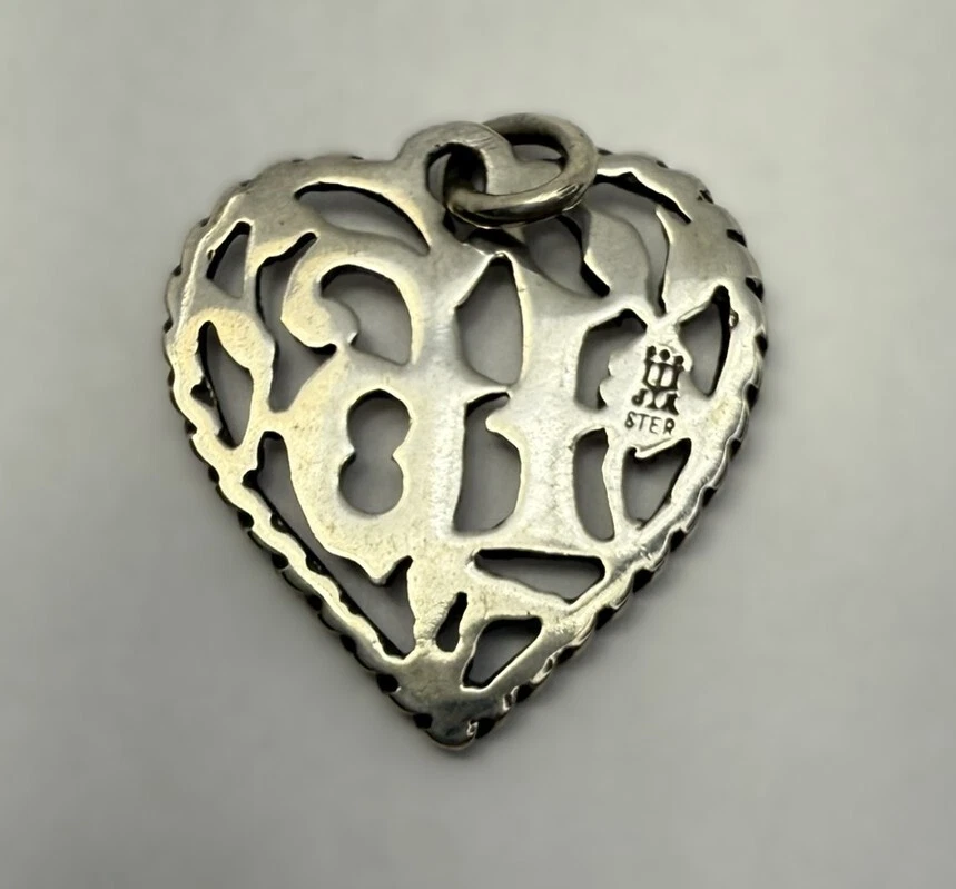 James Avery Signed & Marked Sterling Sweet Sixteen Heart Charm Beautiful Detail: Flowers, Leaves & Vines Retired 3/4" x 3/4" 1.79 g