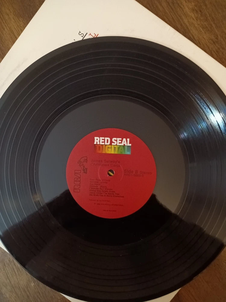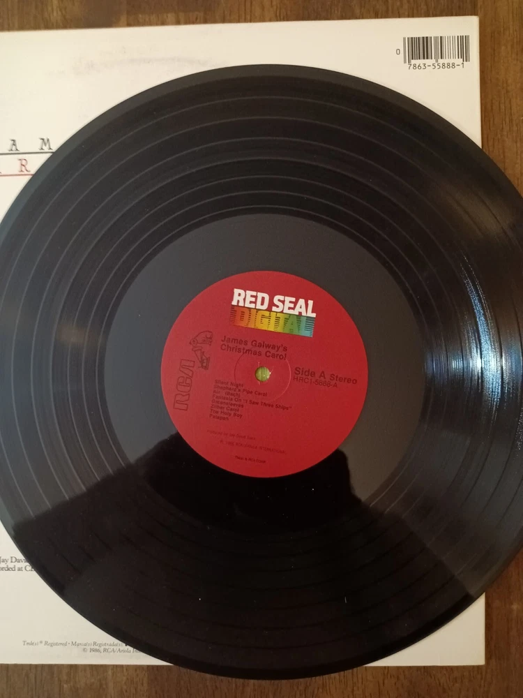 Material:VinylSpeed:33 RPMLanguage:EnglishRecord Size:12"Occasion:Birthday, Carnival, Christmas, Fourth of July, Halloween, Hanukkah, Kwanza, New Year, Thanksgiving, WeddingCustom Bundle:NoNon-Domestic Product:NoSeller Notes:“plays well and cover looks good”Edition:First Edition, First PressingArtist:James GalwayType:AlbumGenre:Acoustic, Alternative, Blues, Easy Listening, Pop, Progressive, R&B & Soul, Rock, Rock 'n' Roll, SoulFormat:RecordEra:1980sModified Item:NoNumber of Audio Channels:Mono, StereoRelease Year:1986Features:Mixed, Original CoverRecord Label:RCA Red SealCatalog Number:HRC1-5888Case Type:Cardboard SleeveColor:BlackRelease Title:Christmas CarolCountry/Region of Manufacture:United StatesSleeve Grading:Very Good Plus (VG+)Inlay Condition:Very Good Plus (VG+)Record Grading:Excellent (EX)Instrument:Bass Guitar, Drums, Electric Guitar, Guitar, Keyboard, Organ, Percussion, VoiceStyle:Classic R&B, Classic Rock, Contemporary R&B, Pop R&B, Pop Rock