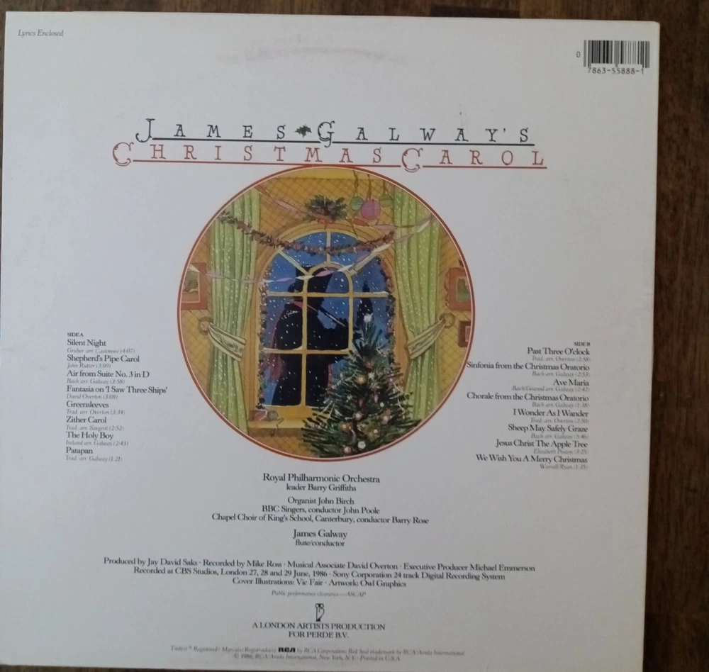 HomeJames Galway Christmas Carol Classical Holiday Silent Night Album LP 1986 EX