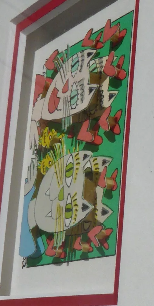 Very good condition, comes with FREE USED frame " CAT MY EYE ON YOU" 2002 "Cat my eye on you" is a 3-D mini original serigraph on paper by James Rizzi numbered 149/350 and hand signed by the artist. FREE USED Frame Measures approx. Size: 12" x 11" (30.5 x 28 cm) Image 7.5 x 5 cm (3" x 2" ) About the artist: (October 5, 1950 – December 26, 2011) was an American pop artist who was born and raised in Brooklyn, New York. d During his lifetime one of the most popular artist, a real „Pop Artist“. He became famous through his invention of the 3D-construction on paper and the 3D-magnetic objects. Since the 1970s those inventions are always connected with his art. This piece will be carefully shipped. Buyers are responsible for import duties/fees/taxes. Please note that colors on screen may vary slightly from actual artwork due to digital device screen calibration. Worldwide shipping available. Buyer is responsible for import duties/fees/taxes. See my other listings for more art. Thank you for looking!