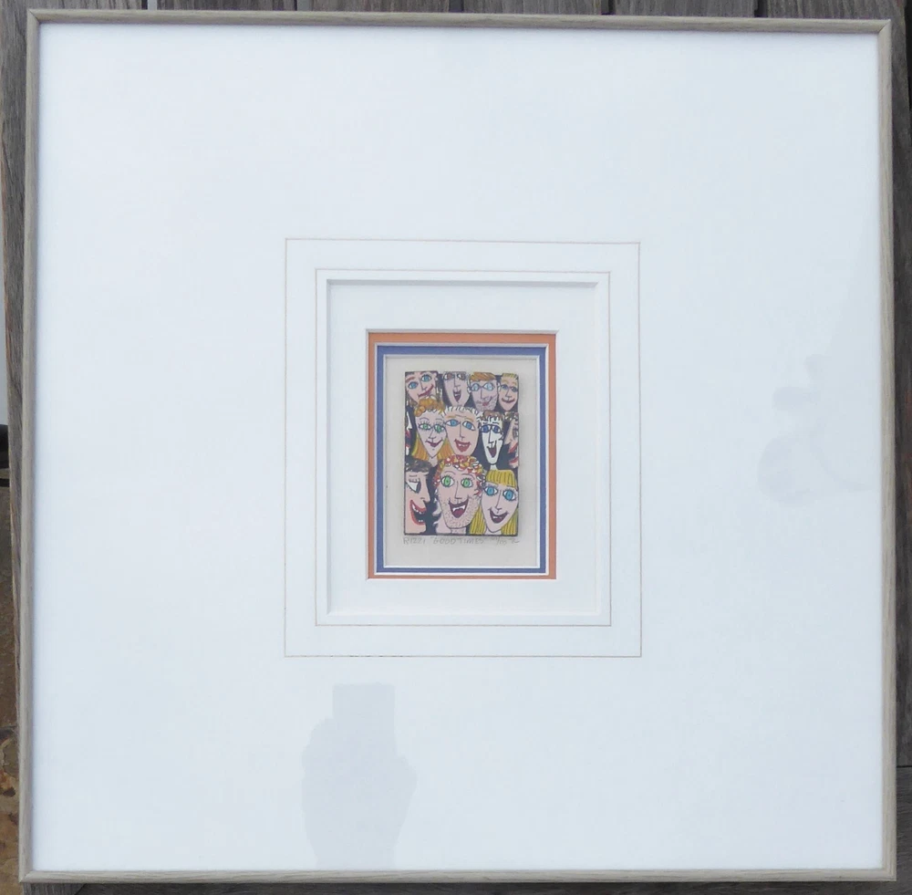 Vgood condition, comes with FREE USED frame, some toning from age " GOOD TIMES " 1986 Vintage "Good Times" is a 3-D original serigraph on paper by James Rizzi numbered 107/175 and hand signed by the artist. FREE USED Frame Measures approx. Size:17 3/4" x 17 3/4" (45 x 45cm) Motiv ca / Picture : 6,3 cm x 8,8 cm About the artist: (October 5, 1950 – December 26, 2011) was an American pop artist who was born and raised in Brooklyn, New York. d During his lifetime one of the most popular artist, a real „Pop Artist“. He became famous through his invention of the 3D-construction on paper and the 3D-magnetic objects. Since the 1970s those inventions are always connected with his art. This piece will be carefully shipped. Buyers are responsible for import duties/fees/taxes. Please note that colors on screen may vary slightly from actual artwork due to digital device screen calibration. Worldwide shipping available. Buyer is responsible for import duties/fees/taxes. See my other listings for more art. Thank you for looking!