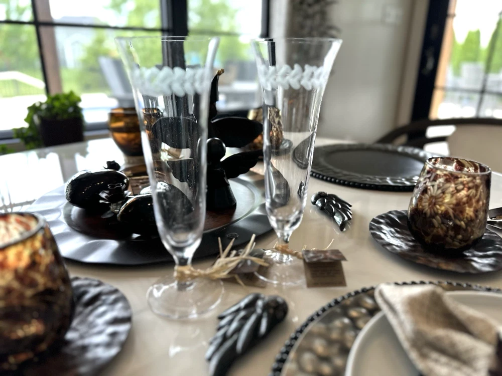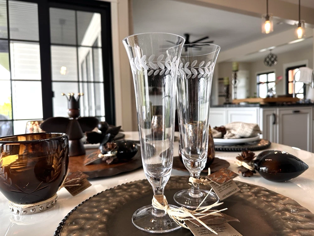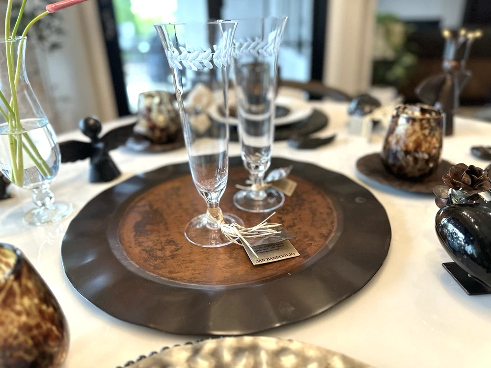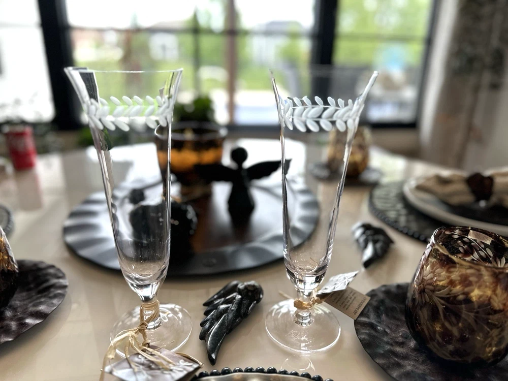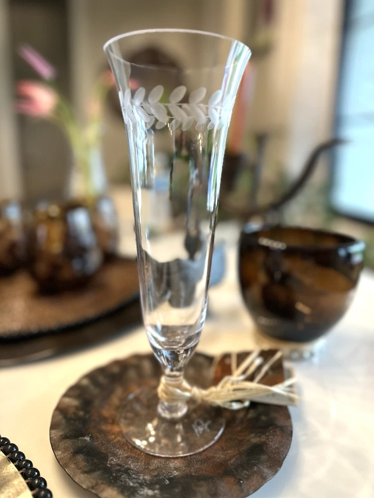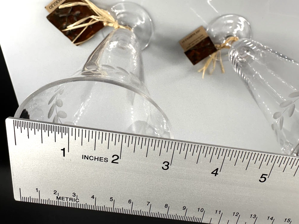 You will receive two (2) handblown etched signed Jan Barboglio flute glasses. SEE VIDEO to appreciate these stunning mouth blown The product is a set of two Jan Barboglio champagne glasses with a retired Laurel Wreath design, handblown and individually crafted. ETCHED SIGNATURE is on the bottom of stem of each piece. Both stemware glasses have original tags. The glasses have an elegant and rustic style, featuring a clear etched design signed by the artist. Made in Mexico, these artisanal pieces are a collector's delight with a timeless design that adds a touch of luxury to any home decor. Each piece is unique and original, perfect for special occasions like Christmas, Mother's Day, Father's Day, Easter, and New Years. Perfect for adding a touch of cultural inspiration and focal point to any space. You may see additional items in the background of pictures. If you are new here, these other pieces will be listed either this week or next week. So, you get a sneak peak of what is coming up next. :) YouBeYou LLC Now back to your Jan Barboglio piece............. Elevate your special moments with these exquisite, retired champagne flutes by the renowned Jan Barboglio. Standing 10 inches tall, each clear, mouth-blown glass features an elegant laurel engraving that symbolizes victory and celebration. Brand new and never used, these stunning pieces have no chips or cracks, ensuring their pristine condition. When originally purchased, they did not come with a box. Perfect for raising a toast or beautifully repurposing as charming bud vases on each side of your centerpiece, these versatile and timeless glasses add a touch of sophistication and style to any occasion or decor. Key features: Retired and no longer can purchase retail Authentic Jan Barboglio hand etched signed Hand-blown and mouth blown (see tag) glass with bubbles (not chips) Laurel wreath design Made in Mexico, collectible and decorative No chips or cracks, and is new condition Unique, handcrafted, and primitive aesthetic Perfect for home decor, gift-giving, or steware / bar collection Has tags on each glass Also can be used for bud vases. Don’t miss out on this rare, original Mexican art piece — a beautiful addition to any home, office, or collection. Buy now to own a genuine Jan Barboglio sculpture that embodies Mexican craftsmanship and cultural history! Feel free to check my Ebay store for the ones currently listed or if you love Barboglio's work and are a collector of her iron, you may want to save (by clicking on the heart) my store to see what is coming up next! I have a huge collection of Jan Barboglio’s ironwork and I post approximately 2-4 items a week. If you are a collector of her work, like many do, or just love her style, please feel free to look at other pieces of her ironwork within my Ebay store. I have a category dedicated for Jan Barboglio items. You can click here to see what I have in my shop currently: VTG JAN BARBOGLIO, Iron, Metal You may want to save my Ebay store to see the ones that are coming up next week! Here is my store name and link; YouBeYou LLC ABOUT JAN BARBOGLIO......... In all of Barboglio's iron/metal pieces you will see brown or black in the piece and this is the finishing process that adds to its distinct iron metal beauty. Each of the artist piece is slightly different in shading texture, color, irregularities, and imperfections - because they are hand individually casted. The talent that goes into these pieces is just remarkable -- talent of combining materials is what makes each object of Jan Barboglio's original and distinctive and has become her trademark. She uses old wood, honed and combined with iron, glass, crystal, and stone mixed with silver and etched cut glass guarantees each object's authenticity. Her pieces are known to be aesthetically warm, primitively handsome and are TRUE WORKS OF ART. Of HIGH QUALITY and always sensuous to the touch, her works have become highly COLLECTABLE. These iron pieces handmade by Jan Barboglio have a long history in Mexico and Latin American countries. Each piece is hand worked. It is individually cast or wrought, hammered, sanded and hand finished. Slight irregularities, imperfections and variations of shading and texture are characteristics of the material and the old world finishing process that adds to its distinct beauty. Each piece is slightly different. JAN BARBOGLIO After many years designing clothing with her sister in their Barboglio Cristina & Jan Collection, Jan Barboglio began sculpting accessories and furniture for her own home. Her childhood, spent in north central Mexico, would prove to be fertile ground for inspiration, and every object created by her would carry with it the rich history and romance of old Mexico. Barboglio’s initial designs of wax grabbers were for her silver, bronze and iron candelabra. Altar pieces and house blessing crosses were integrated into her own home furnishings. Her love of entertainment would later result in her own iron chargers, platters and chafing dishes. Leather goods and saddle stools began to fill her home. All of these influences are evident in her Jan Barboglio Collection of today. If you have any questions even after you have purchased the item --- I am here for you to answer any questions that you may have! I strive to work diligently with every buyer to ensure they are a satisfied buyer, so please contact me anytime. This is a pre-owned item and I take great care to accurately describe the item but please see the pictures for full details. While we do our best to list every item in detail, these are vintage and pre-owned items, and some flaws are to be expected. Please see all photos/ video as they are a large part of the description of our items. Items come from a smoke-free environment. Each item is described in accurate detail with multiple measurements and various photos at different angles front and back, side to side, top and bottom. I have additional similar items that I have yet