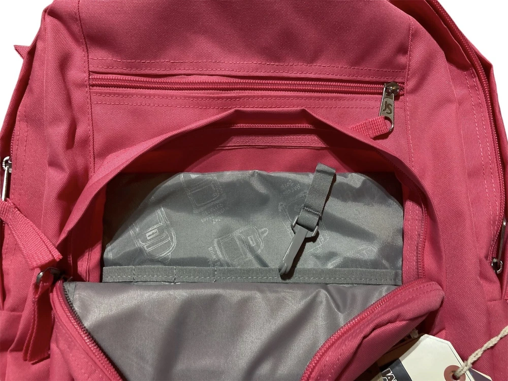 This JanSport Big Student backpack is perfect for students and anyone who needs a reliable and stylish bag. It features a softside bag structure with a canvas fabric type and a water-resistant protective quality. The backpack has a zip closure and a zip-around feature for easy access. It has a capacity of 34.41 liters and measures 17.5 inches in height, 13 inches in width, and 10 inches in depth. The backpack has multiple compartments, including an inner pocket, laptop sleeve/protection, and bottle pocket. It also has adjustable straps and a padded shoulder strap for added comfort. The backpack is spot or wipe clean and comes in a posh pink color. It fits laptops up to 15 inches and is suitable for school, travel, activewear, and casual occasions. Comes from smoke free home