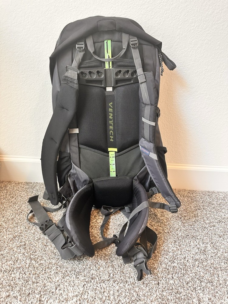 This 67-liter capacity backpack combines a supportive suspension system, torso and shoulder adjustability, and an array of functional pockets to keep you comfortable and organized out on the trial. The backpack’s GridFit System allows you to adjust the length of the torso from 15 to 19 inches, as well as set your preferred shoulder strap width. This backpack was only used for one trip abroad so had some minor tear and wear. All straps and buckles are functional.