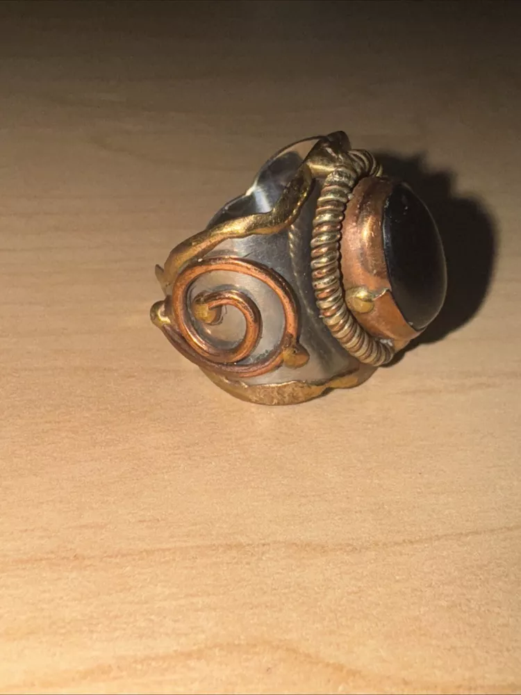 Add a touch of elegance to your style with this stunning Janya Black Onyx Silver plated brass Cuff Ring from India. This adjustable ring is crafted with high-quality materials that ensure durability and long-lasting use. The beautiful black onyx stone adds a touch of glamour to any outfit, making it perfect for both casual and formal events. The silver-plated brass cuff ring features a unique design that is sure to catch the eye of anyone who sees it. Made in India, this ring is a true work of art that combines traditional and modern elements. The adjustable feature ensures that the ring fits comfortably on your finger, making it an ideal accessory for any occasion.