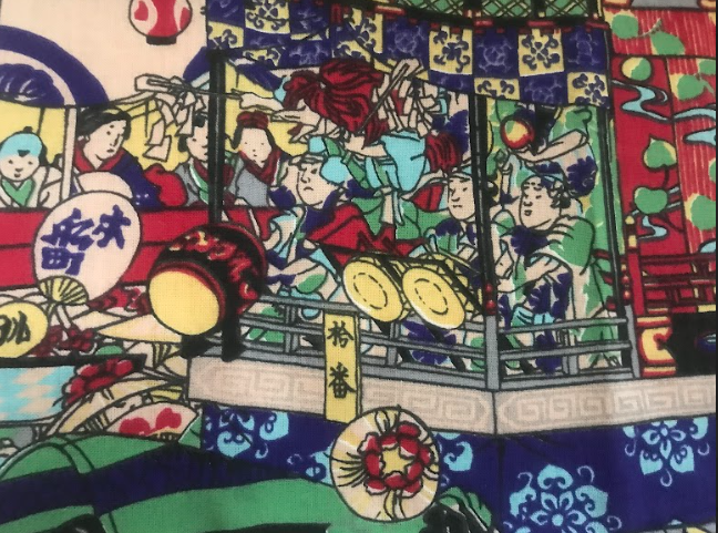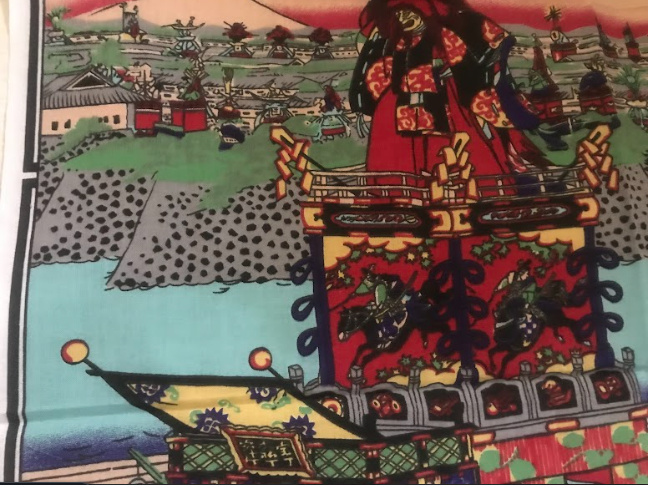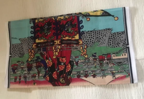 This is a fabric printed with the ancient scenery of the festival in Japan. Length 1 m / 1.09 yds. Width 33 cm / 0.36 yds.