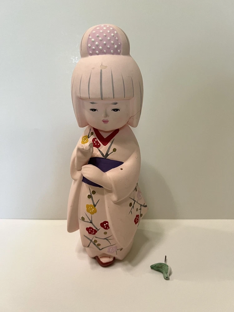 This Japanese Hakata Doll Association Figure with Bird is a hand-painted collectible made of unglazed clay. Originating from Japan, this piece embodies traditional Japanese culture and craftsmanship. The intricate details and cultural significance make it a valuable addition to any Asian collectibles or Japanese culture enthusiast's collection. Flint River Habitat for Humanity is a non-profit organization. Our ReStore is one of the ways we fund the mission of Habitat in our community. 100% of sales from our store are put back into our community. The majority of our merchandise is donated by members of our community. This item was donated from an estate sale. We quality inspect every item but please look over the pictures carefully. Please message if you have any questions. If you are not happy with your purchase, we will accept returns, however we will deduct the cost of the return shipping label from your refund. ~We will ship your purchase within 3 days of your payment. ~We only accept PAYPAL for payment.