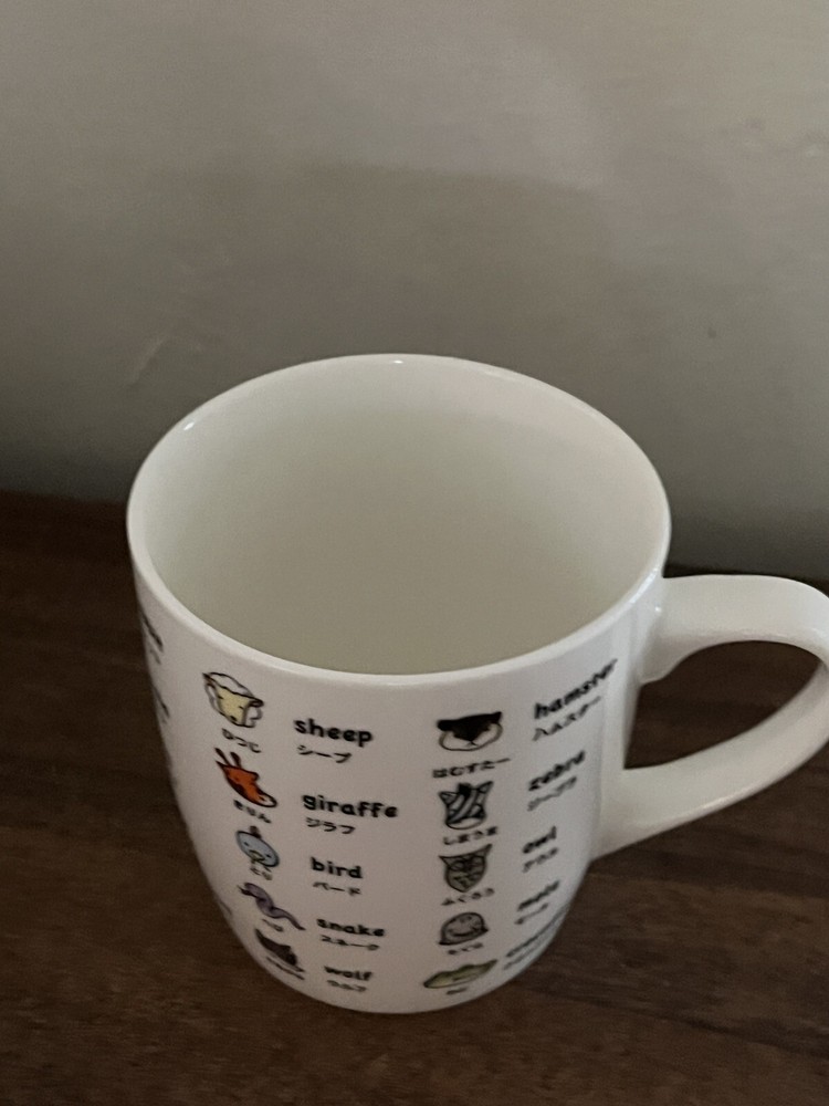 HomeJapanese Kawaii Animal Ceramic Coffee Mug with Katakana Design Preowned