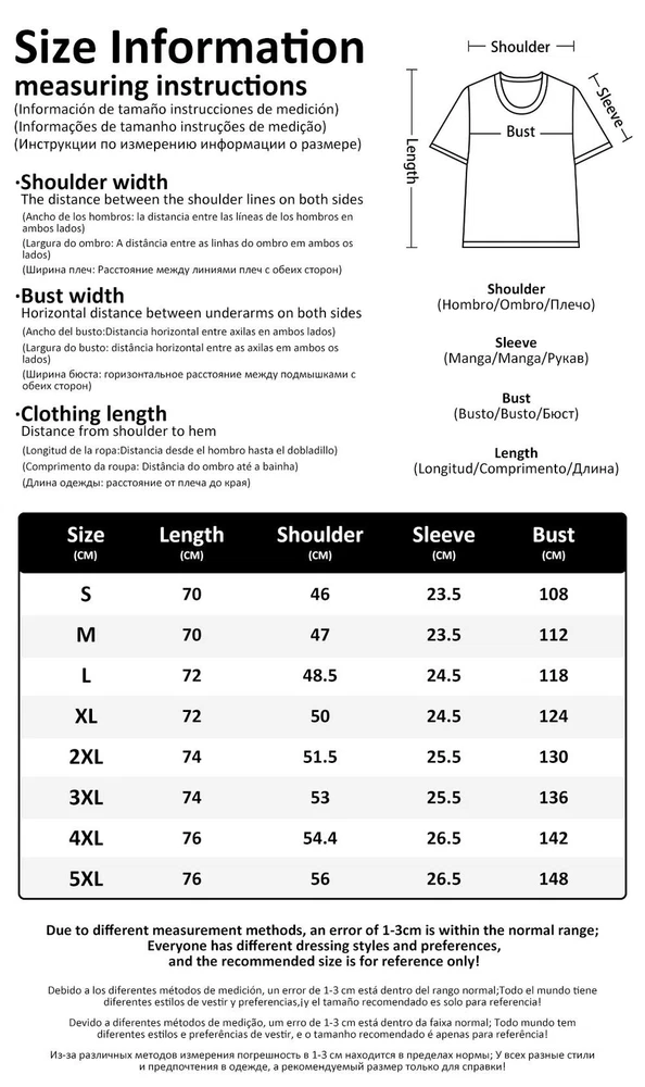 Anime Warrior Graphic T-Shirt - Short Sleeve O-Neck - Mens - Multicolored - EU Size S-5XL ** Unleash your inner warrior with this striking Anime graphic t-shirt! ** This bold and vibrant tee features a captivating design inspired by the world of anime, perfect for showcasing your passion. Crafted from comfortable polyester, this short-sleeved, round-neck shirt is ideal for everyday wear. Key Features: Anime Inspired Design: A striking graphic print captures the essence of your favorite anime warrior, making this t-shirt a conversation starter. Comfortable Fit: Made from breathable polyester for a soft and comfortable feel, ensuring all-day wearability. Versatile Style: Perfect for casual outings, anime conventions, or simply expressing your love for Japanese animation. Available in a Wide Range of Sizes: From EU Size S to 5XL, ensuring a perfect fit for everyone. Machine Washable: Easy to care for and maintain, so you can enjoy this t-shirt for years to come. More than just a t-shirt - it's a statement piece. Show off your anime fandom with this eye-catching design and enjoy the comfort of a high-quality, durable shirt. Don't miss out on this opportunity to own a piece of anime history! Item Specifics: Brand: Unbranded Department: Men Size: EU Size S-5XL Color: Multicolored Type: T-Shirt Theme: Anime Character: Warrior Sleeve Length: Short Sleeve Character Family: Mens Graphic T-shirt Short Sleeve Print Tee Top O Neck Japanese W Neckline: Round Neck Material: Polyester Fit: Regular Features: All Seasons Pattern: Graphic Print Size Type: Regular Country/Region of Manufacture: China Accents: Fabric Type - Broadcloth, Product Line - Mens Graphic T-shirt Short Sleeve Print Tee Top O Neck Japanese W Garment Care: Machine Washable Tops Type: TEES Pattern Type: Print Sleeve Style: Regular Sleeve Length(cm): Short(4-16inch) Gender: MEN Item Type: Tops Style1: Graphic T Shirts Collar: O-Neck Please kindly note that, sizes are Asian sizes, USUAL 1-2 sizes smaller than EU, UK, US, & AU sizes.