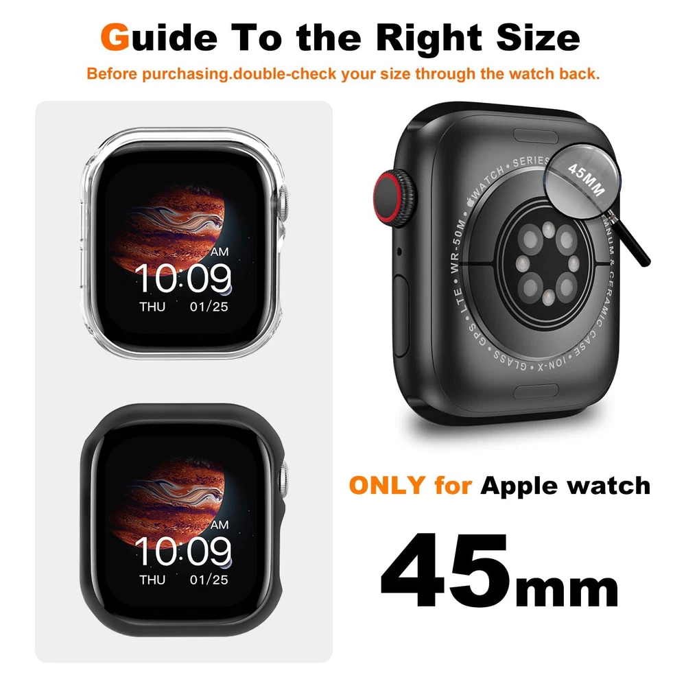 Jaroco 2 Pack [No Screen Protector] Bumper Case for Apple Watch Series 9 Series Features: 【Compatible Model】2 Pack hard apple watch bumper case offers protection for iWatch Series 7 8 45mm, guarding it against scratches, bumps, and impacts. Does not include screen protector. 【Precise Cutout & Protection】 Precise cutouts for easy access to functional buttons and ports; Protection of the Apple Watch bumper against scratches and bumps. 【Lightweight & Slim】Ultra-thin and lightweight for comfortable wear. Make sure you align the square part of the screen side, and the round part with the charging side. 【Easy Installation】This Case for Apple Watch protective cover is designed for quick and hassle-free installation, no need to remove the watch band. 【After-Sales Service】 If you have any questions about our products, please feel free to contact us, we will provide you with the best service. Features: 【Compatible Model】2 Pack hard apple watch bumper case offers protection for iWatch Series 7 8 45mm, guarding it against scratches, bumps, and impacts. Does not include screen protector. 【Precise Cutout & Protection】 Precise cutouts for easy access to functional buttons and ports; Protection of the Apple Watch bumper against scratches and bumps. 【Lightweight & Slim】Ultra-thin and lightweight for comfortable wear. Make sure you align the square part of the screen side, and the round part with the charging side. 【Easy Installation】This Case for Apple Watch protective cover is designed for quick and hassle-free installation, no need to remove the watch band. 【After-Sales Service】 If you have any questions about our products, please feel free to contact us, we will provide you with the best service. eBay integration by