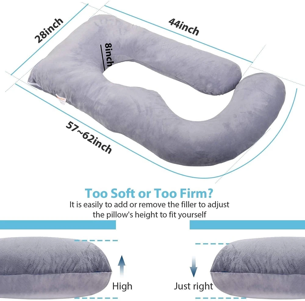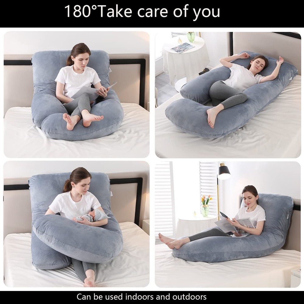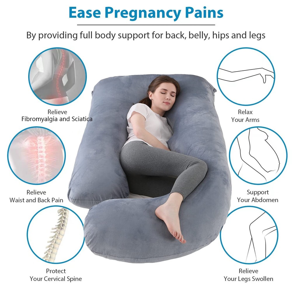 Jcickt Pregnancy Pillow J Shaped Full Body Pillow with Velvet Cover Grey Maternity Pillow for Pregnant Women, 60 inch Full Body Pillows SOFT C SHAPED BODY PILLOW: Soft removable and washable velvet cover make you comfortable all night. 100% PP Cotton,this unique filling without smelling of the body pillow with cover provides comfort for sleeping and retains fluffiness for better performance and longer use. FULL BODY PILLOW for ALL: Compared to other Preganancy Body Pillow, the C-shaped body pillow is not only a Maternity Pillow for sleeping designed for pregnant women or breastfeeding mothers, but also a full body pillow for adults suffering from hip pain, fibromyalgia, sciatica, poor posture, athletes, people in physical therapy or recovering from an injury, and anyone looking to get better sleep. MULTI-FUNCTIONAL PILLOW: The Full Body Maternity Pillow creates is multiple positions for reading, watching TV, sleeping or just relaxing to get more support. Also, makes for a perfect nursing pillow the keeps the baby supported and elevated while mom's back is still cushioned. BEST MATERNITY PILLOW: Our C Shaped Body Pillow supports your back, hips, knees, neck and head to prevent and relieve sciatica, heartburn, and lower back pain;Eases you into better sleep, reducing interruptions throughout the night. RELIEVE PREGNANCY BODY PAIN. Our Velvet Body Pillow can help you into a quality sleep, reducing interruptions all night and helping relieve back pain, hips pain, and lower back pain. Also, pillow is foldable into multiple position to elevate your leg to improve blood circulation. Relieving pregnancy swelling is so important for pregnant women.