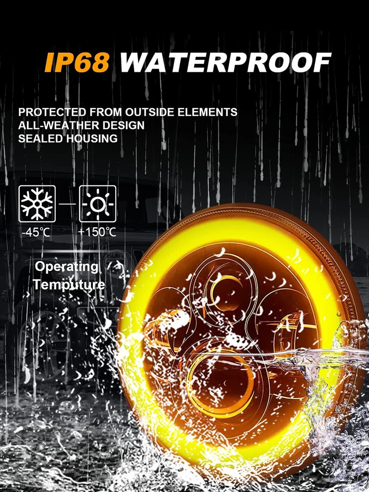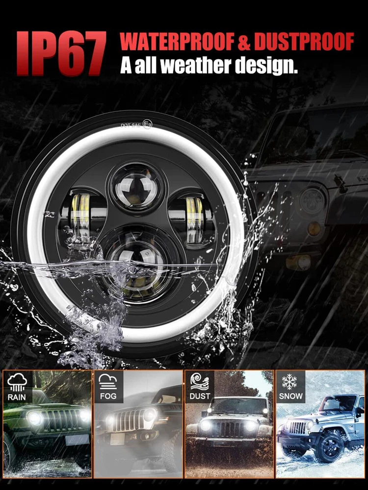 Package list: 2PCS 7 Inch 100W LED Round Headlights 2PCS 4 Inch Fog Lights 2PCS Smoked Turn Signal Lamp (6pcs total) Description: *Newest LED Projector Headlights, 7 inch 105W round led headlights with 8000LM high beam and 4800LM low beam at 6000K for each headlight, above 80000 hours lifespan. *High quality chip LED Fog light provide extra great light to help you driving safely on hard road or bad weather! *LED Turn signal light applies smoked materials, a premium material of gloss finish, instead of frosted glass to create a sense of luxury and secrecy. *Easy to installtion, plug & play.DOT Approved. Specifications: 7\\\\'\\\\' 105W LED Round Headlight: * LED Color: 6000K-6500K White * Luminous Flux: 8000 Lumen High Beam / 4800 Lumen Low Beam * Headlight Type: High/Low Beam(white) / DRL(white) / Turn Signal(red) * Power: 100W/PC * Size: 7\\\\'\\\\' inch * Color: Black * Material: Diecast Aluminum Housing+pc * Voltage: DC 9V~32V * Lifespan: More than 80,000hours. 4\\\\'\\\\' Fog Lights: *LED Color: 6000K White *Power: 60W/PC *Voltage: DC 9V~16V *Luminous Flux: 4000 Lumens/PC *Waterproof: IP67 *Size: 4\\\\'\\\\' Inch Foglight *Color: Black *Material: Aluminum die cast housing+pc Turn Signal Lights: *Item Type: LED Turning Light *LED Color: 2000K(Yellow) *Size: 8.8*8.8*7.2cm *Color: Smoked Lens *Material: Durable ABS Plastic *Voltage: DC9-16V *Lifespan: More than 80,000hours. Warranty: 5 years Fitment: Fit For Jeep Wrangler JK JKU 2007-2018