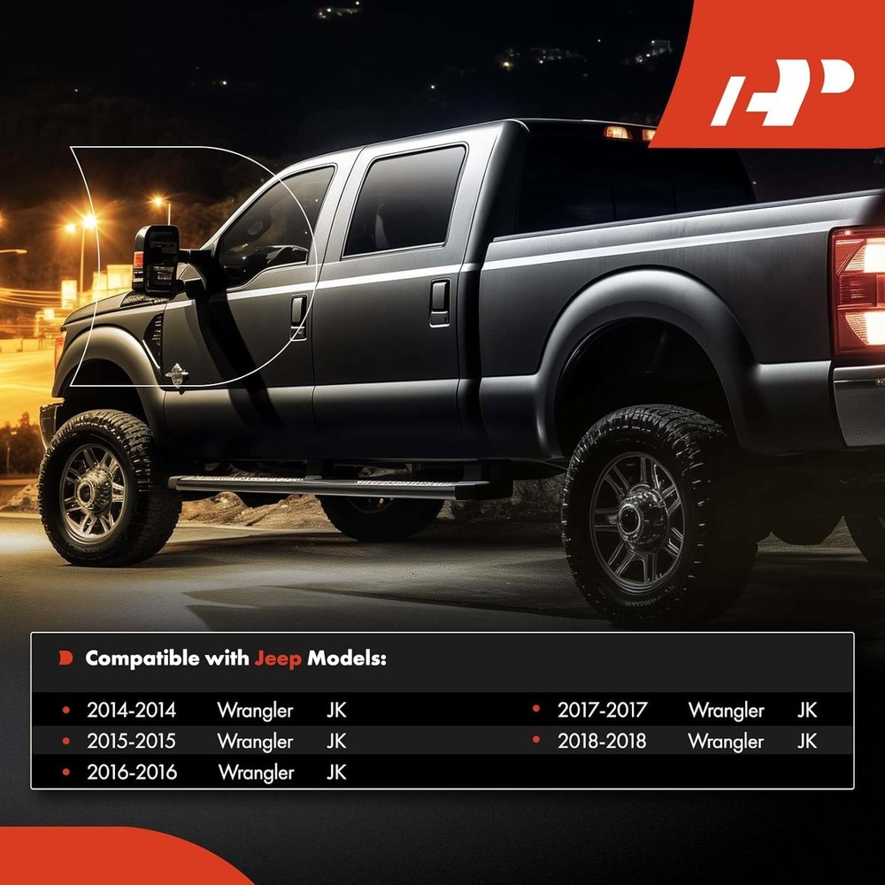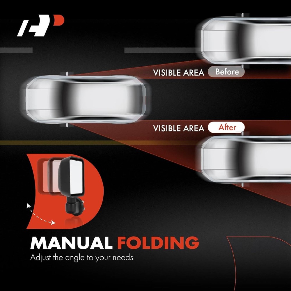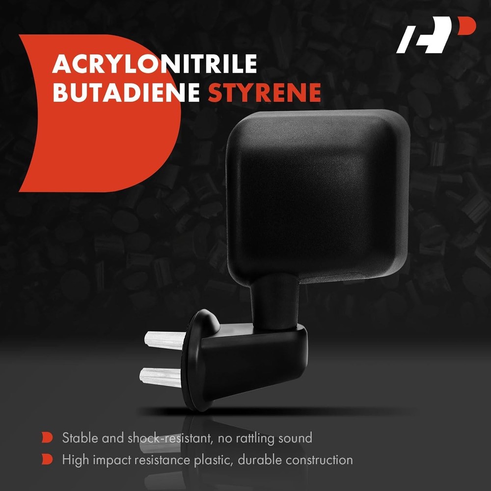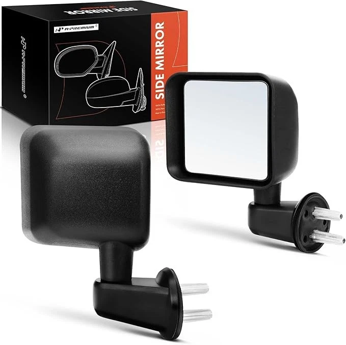 Driver and Passenger Manual Side View Door Mirrors - Compatible with Jeep Wrangler JK 2007 2008 2009 2010 2011 2012 2013 2014 2015 2016 2017 - Manual Folding Non-Heated Black - Pair Set Item Description About this item [Vehicle Fitment]: Compatible with Jeep Wrangler JK 2007-2017 [Notice]: A-Premium Outside Mirror & Glass Assembly is manufactured and tested to the strictest standards for superior performance. Please check if your vehicle has the same functions as that of towing mirrors, otherwise some functions will be disabled when the vehicle does not possess the corresponding functions. [Specifications]: ① Position: Front Driver and Pasenger Side; ② Glass Type: Convex (Right) & Flat (Left); ③ Color: Black; ④ Mirror Adjustment Method: Manual; ⑤ Folding Type: Manual; ⑥ Heated: No; ⑦ Arrow Signal on Glass: No; ⑧ Turn Signal Indicator: No; ⑨ Puddle Light: No; ⑩ Temperature Sensor : No [Durable Construction]: Utilizes the premium material technology for a long lifespan. Quick and easy installation, just simply connect the plugs of the trailer towing mirror to the corresponding power cord, requiring no special tools.