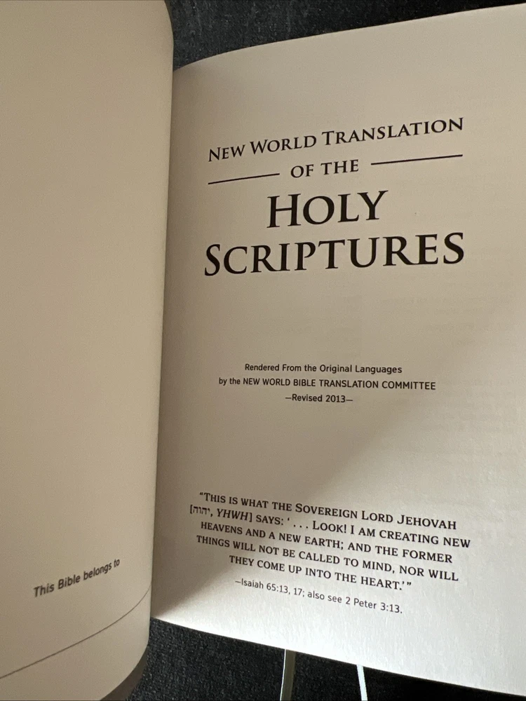 This is a new World Translation Holy Scriptures staff watchtower Bible, published by the Watchtower Bible & Tract Society of New York, Inc. in 2013. The Bible is in English language and is in a leather format. It is a textbook that is recommended for adult and further education, particularly for those who are interested in the subject area of Bibles. The publication name of this textbook is New WORLD Translation of the Holy Scriptures, and it is written by Inc. Staff Watchtower Bible and Tract Society of NY. The book is categorized under Books & Magazines, Textbooks, Education & Reference, and Textbooks.