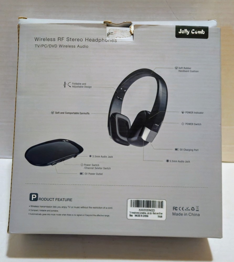 Jelly Comb Wireless Stereo Headphones for TV PC DVD with Transmitter