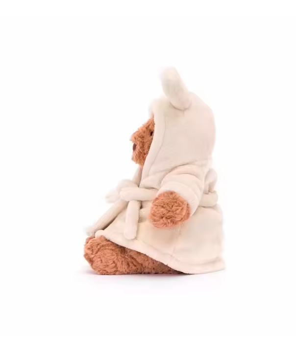 The Jellycat Bathrobe Bartholomew Bear is a cute and cuddly stuffed animal toy that would make a perfect birthday gift for children aged 18 and above. This small-sized plush bear, filled with PP cotton and measuring 30cm, is part of the Peter Rabbit character family collection by Jellycat. With its unisex design, this adorable bear is sure to delight any child and bring joy to their bathrobe collection. Its high-quality materials and brand reputation make it a timeless and charming addition to any toy collection.