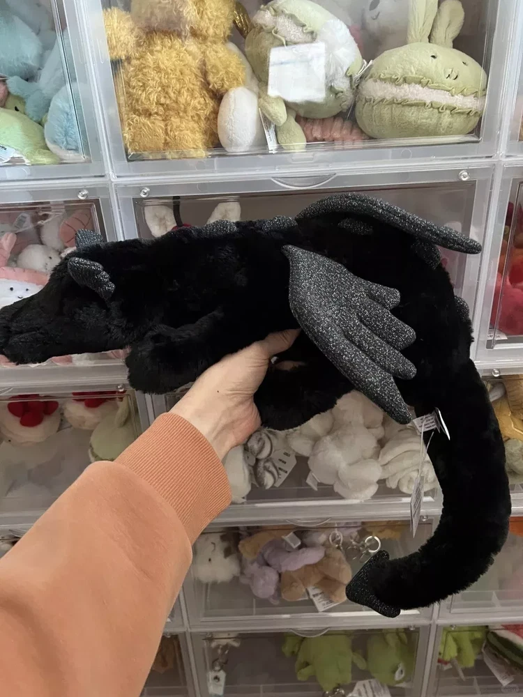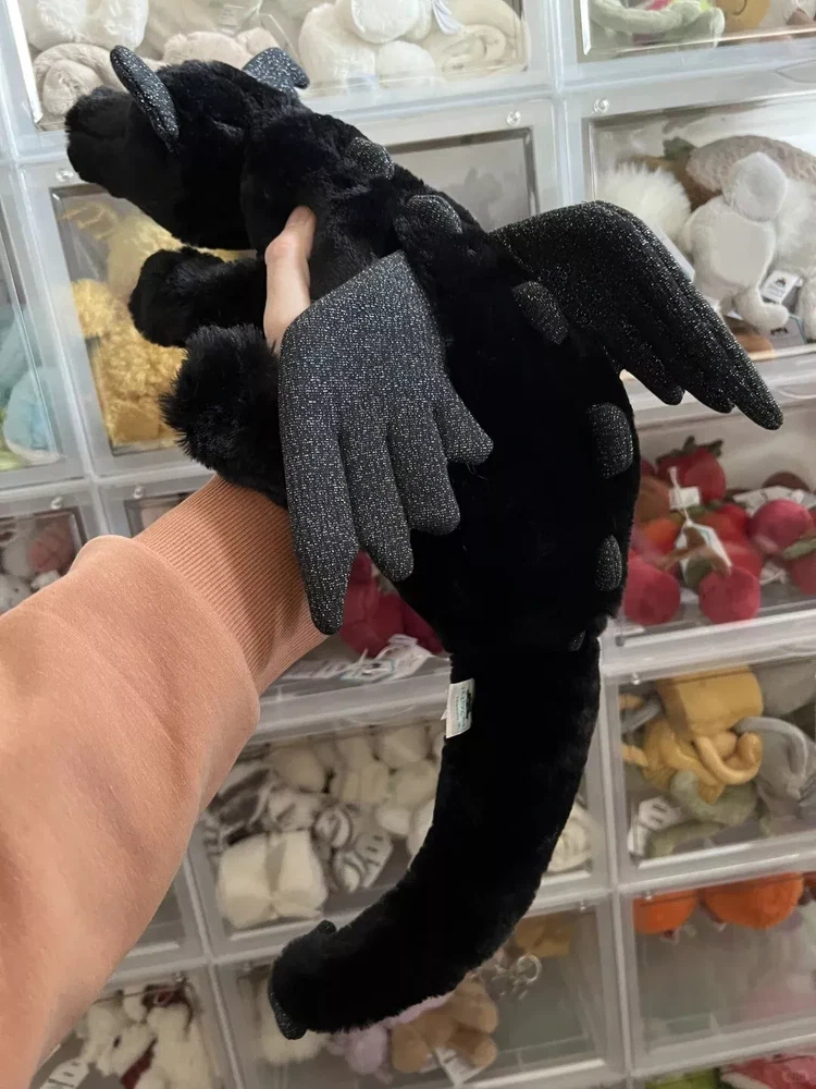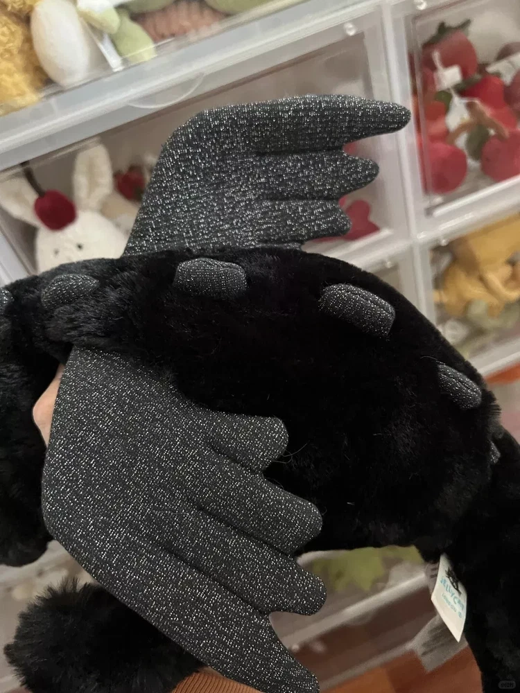 Features 1. domineering appearance, cute core: When you first see it, its majestic posture will surely amaze you. With a super large size of 66cm, it can be called a "giant" in the doll family, yet it still retains exquisite details. The whole body is covered in shiny black fur, simulating the mysterious and profound scale texture of a black dragon. Each strand of fur seems to have been kissed by moonlight, with a soft luster, as if it contains magic from ancient times. But don't be deceived by its seemingly aloof appearance. Look at its round belly, adorable short claws, and slightly upturned corners of the mouth that seem to be smiling, instantly filling the contrast with cuteness and making people happy. 2. Top touch, healing the soul: Jellycats has always been known for its excellent fabrics, and this Onyx Black Dragon is a model among them. Gently caressing its fur is like reaching into the softest clouds or being gently brushed by the warm spring sun, delicate, smooth, and elastic. This ultimate tactile sensation is not only a pleasure for the skin, but also a comfort for the soul. After a busy day, I returned home and buried my tired body in its warm embrace. All the pressure and troubles were instantly dispelled, leaving only a peaceful and healing heart, as if protected by a black dragon, entering my own worry free fairyland. 3. Exquisite craftsmanship, the choice of quality: Its birth has gathered the hard work of countless craftsmen. Each stitch and thread is precise and error free, ensuring that the Black Dragon's figure is full and well-defined. The eye part is carefully crafted with special materials, which is both bright and lively, as if it can perceive your thoughts, and smooth and safe. Even if there is a young baby at home, there is no need to worry about any risks. The filling is full and even, no matter how you hug or knead it, it can quickly return to its original state, always accompanying you in the most perfect posture. After the baptism of time, this companionship will never fade. 4. Versatile and adorable friends, unlimited scenes: Whether decorating a cozy children's room, adding an adventurous touch to children's dreams; Still placed on the living room sofa, becoming the finishing touch in home aesthetics and attracting visitors' attention; Or accompany college students to spend the time of staying up late in the dormitory, injecting vitality into the boring study life. This Onyx Black Dragon 66cm doll is perfect for both photography and travel. It is an excellent companion, a heartwarming support during travels, and the best token of love across ages. It can add color to your life anytime, anywhere. In this fast-paced real world, Jellycats Onik Black Dragon 66cm comes with dreams and warmth, inviting you to step into its mysterious territory and continue writing your own story. What are you waiting for? Put this cute magic in your pocket quickly. Specification Material: Cotton Size: 29 x 20 x 20 cm Weight: 300 g Package Include: 1x Plush Toy
