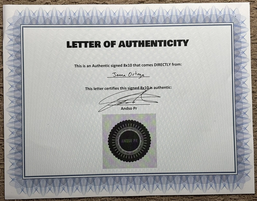 Jenna Ortega signed photograph. Comes with COA seen in photos. Great condition. I got it online from a seller with great reviews Selling as is, I don't accept returns Let me know if you have any questions! :)