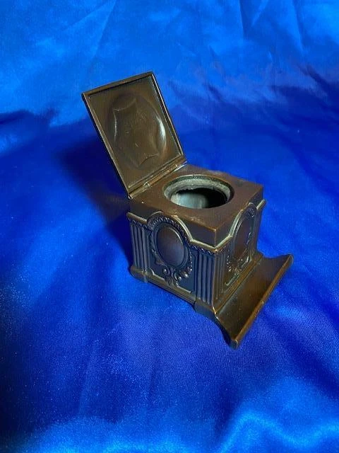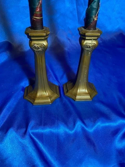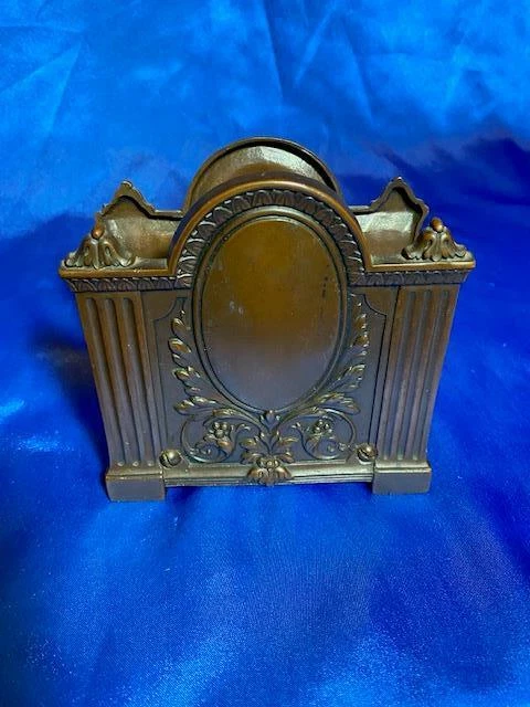 Vintage J B (Jennings Brothers) Desk set, includes: 2 Neoclassical Bronze plated Candlestick holders (candles not included) Dimensions: 6" tall; base 3.5" wide. Weight: 2 lb., 3 ozs. for the pair. 1 Bronze letter holder Dimensions: 4.5” tall, 1.5” opening Weight: 1 lb., 10 ozs. 1 Bronze inkwell holder with pen rest (inkwell missing) Dimensions: 2.5” tall, 2.5” x 3” Weight: 1 lb. Jennings Brothers Metal Foundry started in 1890 in Bridgeport CT. They specialized in nouveau metal art. Jennings Bros bronze 4 piece Desk Set Inkwell, Letter holder, 2 Candle Holders Vintage J B (Jennings Brothers) Desk set, includes: 2 Neoclassical Bronze plated Candlestick holders Dimensions: 6" tall; base 3.5" wide. Weight: 2 lb., 3 ozs. for the pair. 1 Bronze letter holder Dimensions: 4.5” tall, 1.5” opening Weight: 1 lb., 10 ozs. 1 Bronze inkwell holder with pen rest (inkwell missing) Dimensions: 2.5” tall, 2.5” x 3” Weight: 1 lb. Jennings Brothers Metal Foundry started in 1890 in Bridgeport CT. They specialized in nouveau metal art Shipping rates include delivery confirmation, insurance, handling and packaging cost. Please note that there are labor and packing materials cost associated with shipments. We generally do not charge full cost for these items, but they result in a shipping cost that is higher than postage. We usually ship UPS ground or USPS. Our listings have calculators so you can calculate shipping costs to your zip code before you bid. Your purchase will be shipped within 2 business days. We cannot guarantee delivery date. WE GLADLY COMBINE ORDERS TO REDUCE SHIPPING COSTS! Pictures sell! Auctiva offers Free Image Hosting and Editing. 300+ Listing Templates! Auctiva gets you noticed! The complete eBay Selling Solution. Track Page Views With Auctiva's FREE Counter