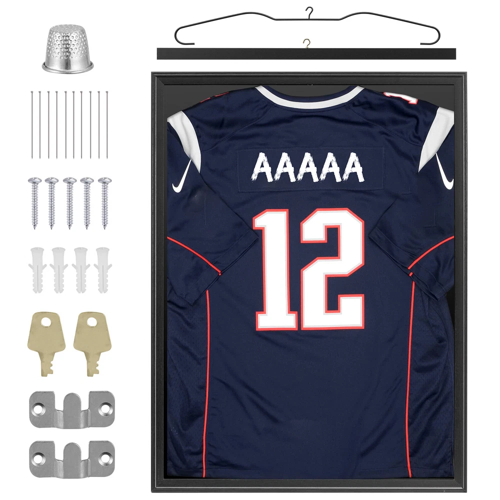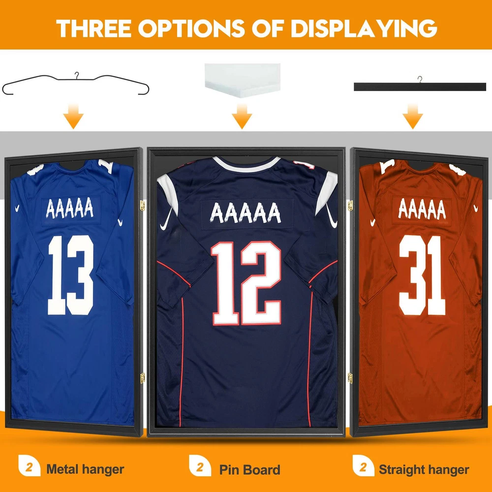 Jersey Display Case Frame Shadow Rack Box Exquisite Lockable with Hanger Wood Product Description Description: Made of solid pine wood with exposed metal hardware, this jersey display frame case is double enough to display in your home for years to come. With high transparency PS board, this Jersey Display Frame is perfect for storing and showing your jerseys, photos, crafts or other memorabilia clearly. Coming with lengthened hanger, your jersey will look more upright in the plush-lined frame. The classic black appearance fits exsiting decor of your room. Features: Durable pine material with beautiful spray paint, complementing home decor UV resistant door with high transparency, offering sun and dust protection Suitable for varied of jersey from your favorite basketball, soccer team PS board fixed by 10 press buckles in the door frame for more stability Hinged door with gold locks for opening easily and closing tightly Perfect to store and display your valuable sports memorabilia Back metal hooks are convenient for hanging on the wall Strong packaging ensures safety during transportation Anti-scratch film avoids scratches and prevents dust Specifications: Color: Black Material: Pine Net Weight: 5.18 lb Overall Dimension: 23.23"L x 1.61"W x 31.3"H Inner Dimension: 22.24"L x 0.98"W x 30.32"H Hanger Length: 19.69" PS Board Thickness: 0.08" Package Includes: 1 X Jersey Frame Display Case 1 X Hanger Note: Not Include Jersey Payment Before you palce an order, please kindly make sure that you have a paypal account. We accept PAYPAL payment only. Payment should be completed within 2 days after auction closed, or unpaid dispute will be filed for an closing auction. An unpaid case will be filled after 4 days. Delivery details We only ship to USA ! We ship to your eBay address. Each package will be shipped to Australia by AU Post Regular Parcel with tracking number. Please check your shipping address carefully before checkout, it can't be changed if order completed. All items will be shipped within 1-2 business day upon receipt of payment.Orders placed on weekend will be shipped within 3 days. If you do not receive your item in 7-10 business days.please contact us immediately for further assistance. We will be responsible for any damages or losses incurred in the shipping process. About us We maintain high standards of excellence FIVE STAR and strive for 100% customer satisfaction! Positive Feedback is very important to us. We hope that you contact us immediately Before you give us neutral or negative feedback, so that we can satisfactorily address your concerns. We promise to offer the lowest price and high quality produce. Our working time: From Monday to Friday(9:30 am to 18:00pm), we don't working on holidays ,hope you can understand and know that , thank you. Please always talk to us via ebay Message. We appreciate your business and look forward to growing our e-Bay sales with satisfied customers. Feedback Contact us If you have any questions, please feel free to contact with us by ebay Message during our business hours ( 9:30a.m. to 5:30 p.m.), or email us through eBay, we will try our best to help you to resolve it. For any presale or after-sale questions,please do feel free to email us! Due to the time difference, each email will be replied within 1 working day,and weekend will be delayed a bit.