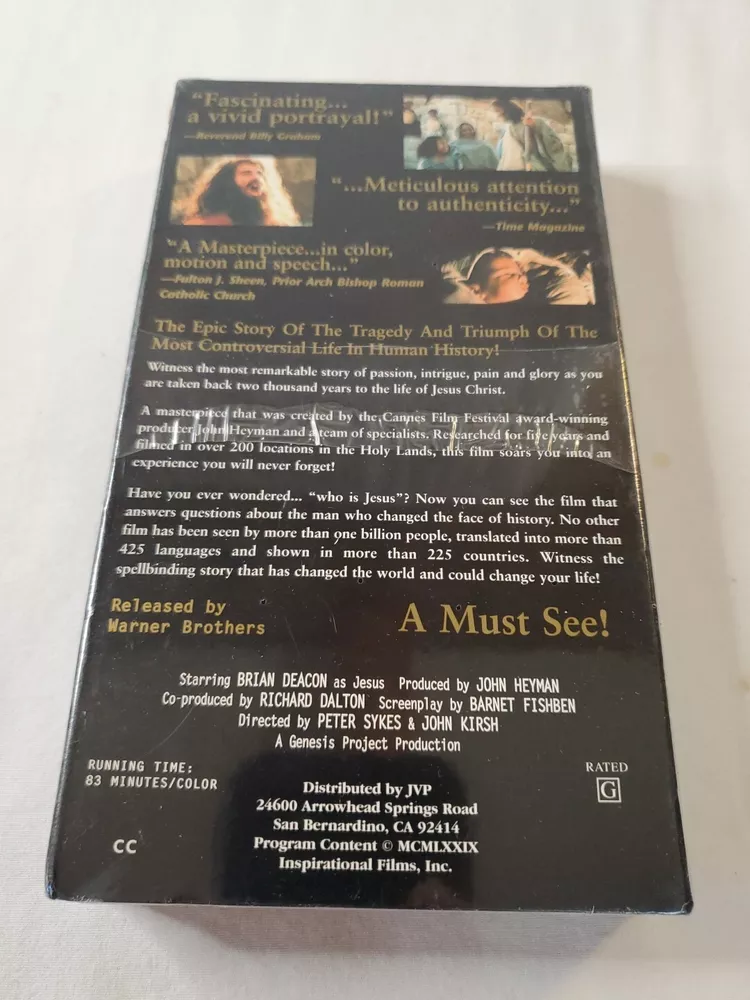 THANK YOU FOR VISITING OUR STORE. WE SHIP 6 DAYS A WEEK (UNLESS THERE IS A FEDERAL HOLIDAY). MOST ITEMS WILL SHIP IN A STURDY BOX AS NEEDED. PLEASE FEEL FREE TO REACH OUT IF YOU HAVE ANY QUESTIONS. WE WILL COMBINE SHIPPING WHEN AVAILABLE. Experience the life story of Jesus with this brand new, sealed VHS tape. This film features the talented Brian Deacon as the lead actor and is directed by Peter Sykes. It is a must-see for those interested in religious themes and Christianity. The edition of this VHS tape is full screen and the language is in English with a signal standard of NTSC. This film has a rating of NR and falls under the sub-genre of religious themes. Don't miss out on this Warner Home Video studio production, titled "Jesus Path of Faith".