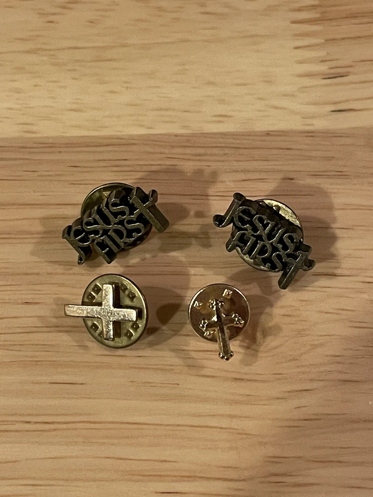 Jesus First Cross Lapel Pin Tie Tack Religious Jewelry. Condition is Used. Shipped with USPS Ground Advantage.