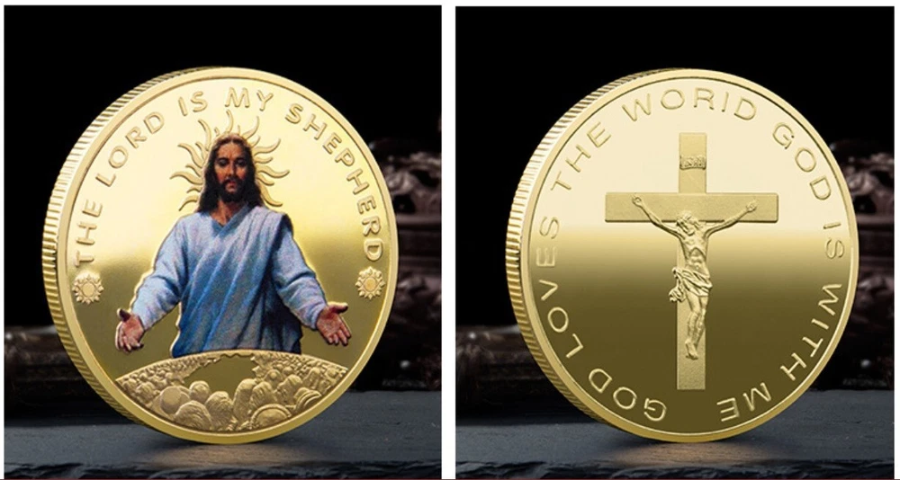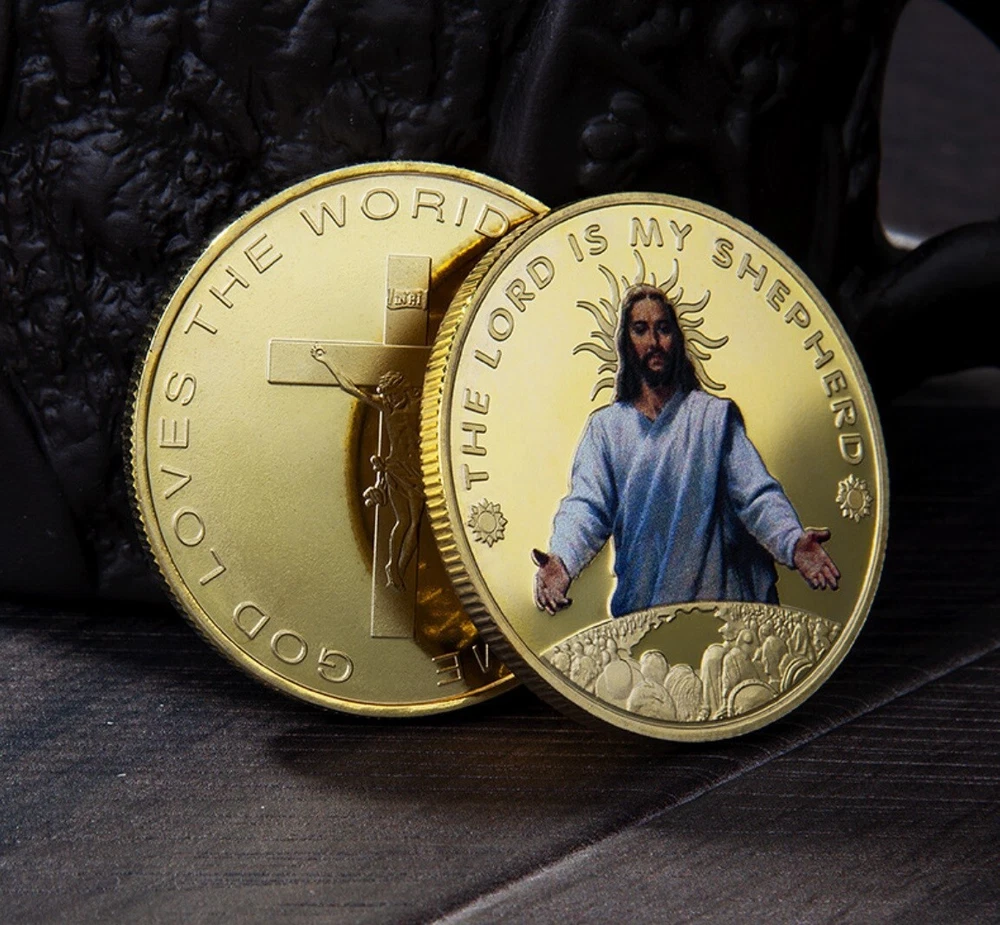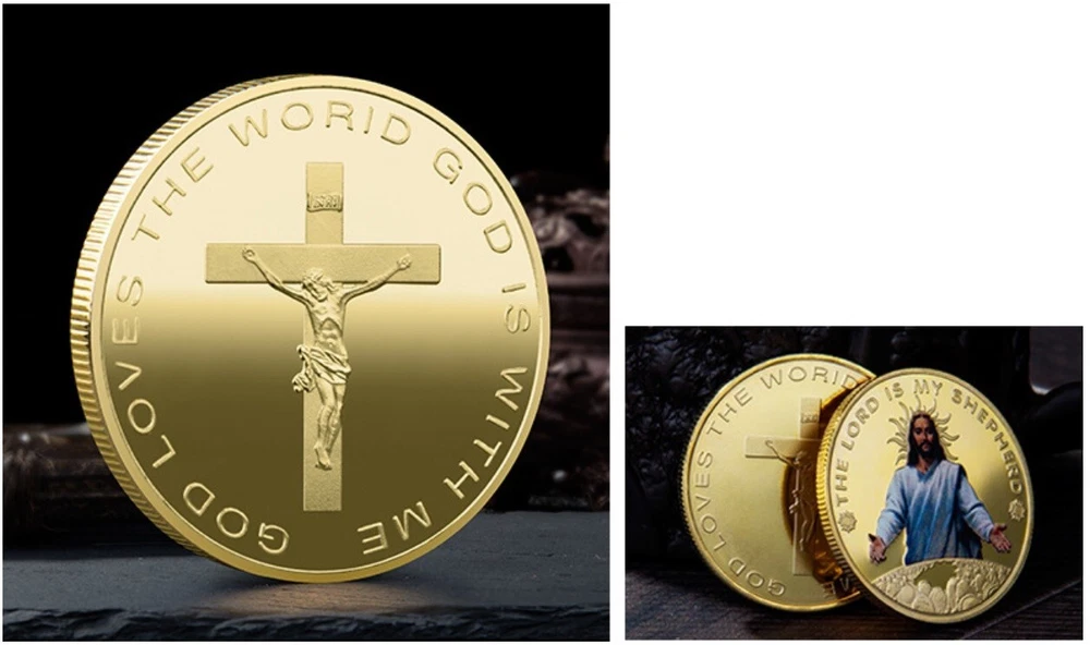 Jesus Religious Golden Plated Commemorative Coin Challenge Medal Coin for Christianism confessor Collector Coin Novelty hobby gift Size approx.: 40mm*3mm Material: Metal with Gold Color Plated Weight: around 40g Souvenir Art & Hobby Toys Business Holiday Decoration Gifts Package: 2 piece coins packed with premium capsule and opp bag