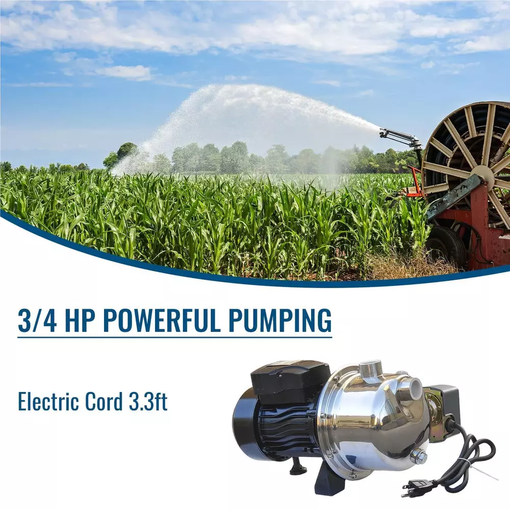 Jet Water Pump 131ft 110v/60Hz Shallow Well Jet Pump 3/4HP 18.5GPM NEW Details: π¦γππ¦π¦ππ‘π§πππ π£ππ₯ππ ππ§ππ₯γ[Voltage]:110V/60Hz; [Power]:0.75HP/0.55KW; [Max. head]:40m/131.23ft; [Max. flow rate]:18.5GPM/4.2mΒ³/h; [Speed]:3420r/min; [Ports]:1 inch; π¦γπ¦π§π¨π₯ππ¬ π ππ§ππ₯πππγThis Sprinkler Pump body is made of high quality stainless steel. It has corrosion resistance and rust prevention characteristics, which can be used underwater for a long time. π¦γπ’π©ππ₯ππππ§ π£π₯π’π§πππ§ππ’π‘γThe Water transfer draining irrigation pump has built-in automatic thermal overload protection prevents the motor from overheating and burning out. When the pump is idling, it will automatically shut down to protect the motor. Completely submerge the pump in water before starting to prevent icing in cold winters π¦γπ£π’πͺππ₯ππ¨π π π’π§π’π₯γThe water pump works with 0.75HP motor of 3420RPM that has strong suction. The high efficiency of the pump ensures that enough water for daily use and agricultural irrigation can be extracted in a short time. π¦γπ©ππ₯πππ§π¬ π’π ππ£π£πππππ§ππ’π‘π¦γThe shallow well pump is versatile due to its robust design, finding utility across various scenarios including home water supply, agricultural irrigation, rural water provisioning, gardening, and industrial water usage. Its reliability makes it a common solution for water extraction needs, serving as a potential backup during emergencies. FAST SHIPPING WARRANTY EASY RETURNS CONTACT US FAST SHIPPING We only ship to US mainland 48 states and worldwide via ebay international shipping program. We don't offer direct international shipping. Consult us if you live in Hawaii, Alaska or Virgin Islands. Also we don't ship to any APO/FPO/PO BOX address. We offer FedEx Ground or Home delivery in optional which can make it faster, charge additional shipping fee. Delivery is any day from 1-5 business days (Monday through Friday, excluding weekends and holidays) WARRANTY This item is covered by our 12 months unlimited mileage warranty. Any customer may use the same outlets to facilitate a return or warranty claim. Any item must be returned within 30 days of the original purchase for refund; item(s) retaining a warranty may be returned beyond 30 days but within the remaining warranty period. Returns that are not subject to warranty may accrue a restocking fee and should be returned at the customers cost. We reserves the right to request proof of purchase and mechanical failure in the event of any warranty claim; any returns or claims that violate Ebay's Online Return policies will be reported. We holds no responsibility or liability for additional repairs, damages (punitive or non-punitive), loss of time, or any other extraneous circumstances created by a purchase made from said party. EASY RETURNS We understand that sometimes you need to make a return or an exchange. All we ask is you send it back in the same condition it was received - new and un-used. If the product you receive is not the one you ordered, please take photos of any visible of visual reference and contact us directly; photos must be CLEAR and VISIBLE. Logistical claims must be filed within 30 days of received the product; exchanges in these cases will be handled promptly and at?no cost to the customer. In order to process a return or exchange, please call us or send us a message through eBay and we will be happy to assist you immediately. HoweverοΌany return that is NOT defective or NOT received in error, is the responsibility of the customer. We DO NOT cover any shipping costs and/or additional fees associated with the transaction. CONTACT US We are open Monday to Friday 8am to 5pm Mountain Standard Time, and Saturday 9am to 1pm MST. Our friendly staff are available during these hours. Please feel free to call us, or send us a message via eBay. We aim for complete customer satisfaction and repeat business; we will be more than happy to help you feel 100% comfortable with your purchase.