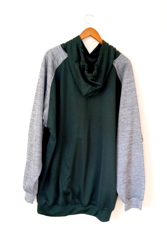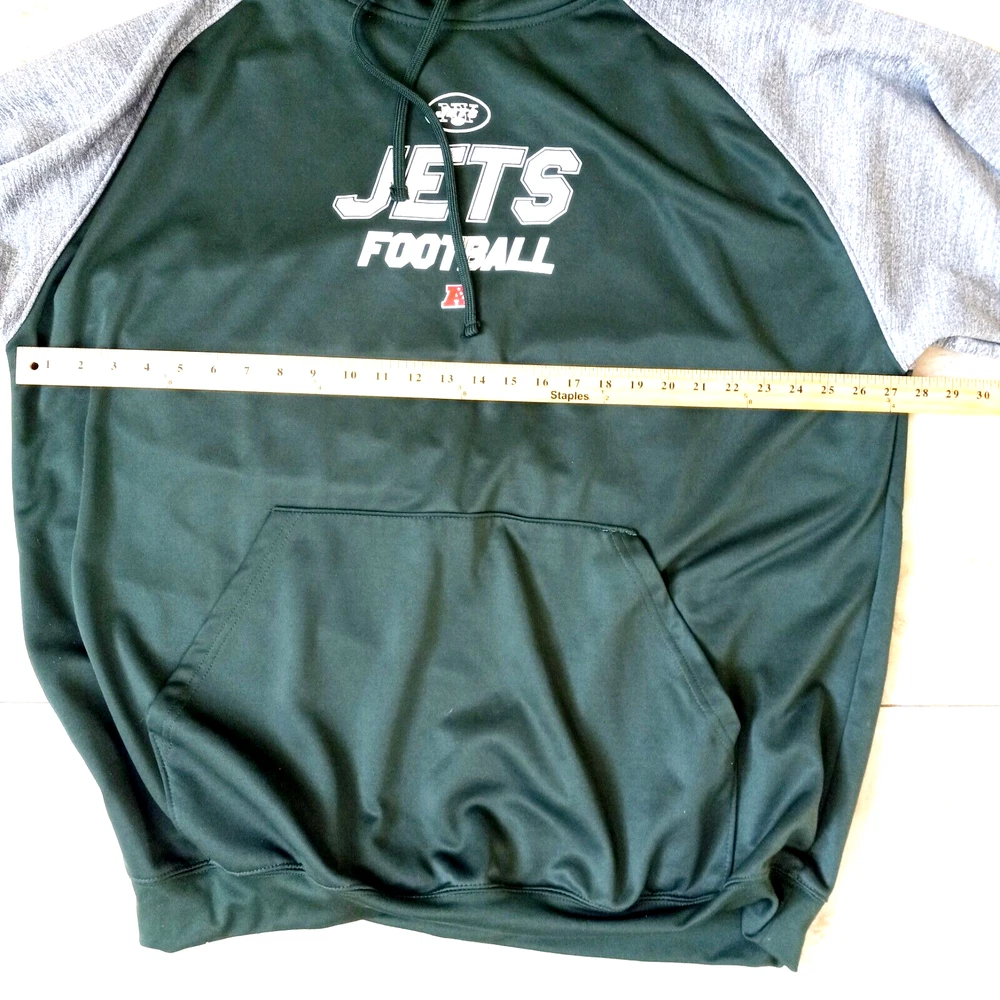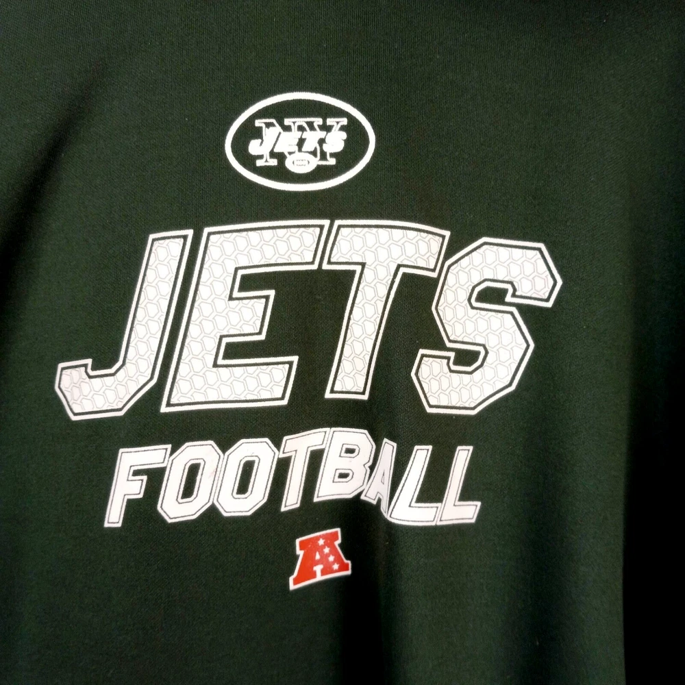 Show your support for the New York Jets with this officially licensed NFL Team Apparel hoodie. Made for men in size 3XL, this green hoodie features the team's logo, making it the perfect addition to any fan's wardrobe. Whether you're catching the game at the stadium or watching from home, this hoodie is sure to keep you warm and comfortable. Made of high-quality materials, it's both durable and stylish. Perfect for any football fan, this hoodie is a must-have for any Jets supporter.