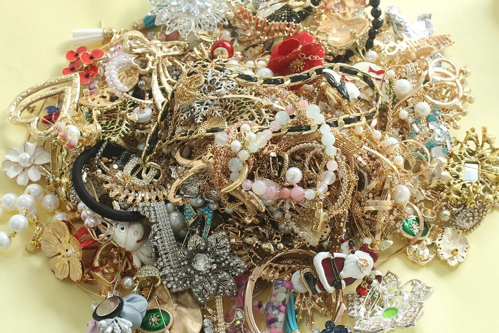 This bulk lot of jewelry is a perfect collection for anyone who loves wearing vintage to modern costume pieces. The lot includes earrings, necklace, bracelet, ring, charm, bangle, and beads in a multicolor mix of materials and metals. The brand of this estate collection is unknown, but the quality and beauty of each piece speak for themselves. This 1 lb mixed lot of jewelry is perfect for any woman who wants to add some variety to her collection. The era of these pieces is undated and the country/region of manufacture is unknown. The metal purity and stone creation of each piece are also unknown, but they are all made with mixed metals and materials. Get ready to upgrade your jewelry game with this unique and wearable bulk lot! 1 Pound Jewelry Lot - Jewelry 1 LB WEARABLE Bulk Lot Estate Vintage to Modern Costume- Items sourced from our clean-out of estates in New York metro area Title: Jewelry Lot - 1 pound - wearable assorted mix Condition: mixed assorted items Condition of items "as is" are mixed, old and new. scratches, scuffs, blemishes exist in this lot. Shipment : standard USPS Please scroll and search all of our listing for other great deals and items on ebay. Unique second hand treasures, gems, and one of a kind collectibles, items posted daily! Please consider leaving us a positive review ! Business Hours of Operation: Monday - Friday from 9 AM - 5 PM EST. Orders are shipped Monday - Saturday during business hours. Message us: We work to get back to you in less than 48 hours. On the weekend, please allow up to 2 Business day to receive a response. We care about your concerns and will get back to you as soon as possible!