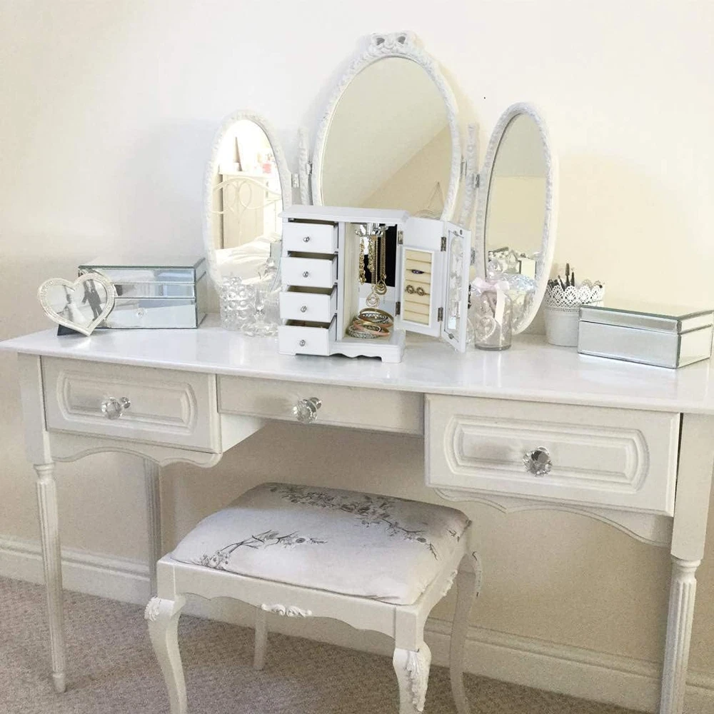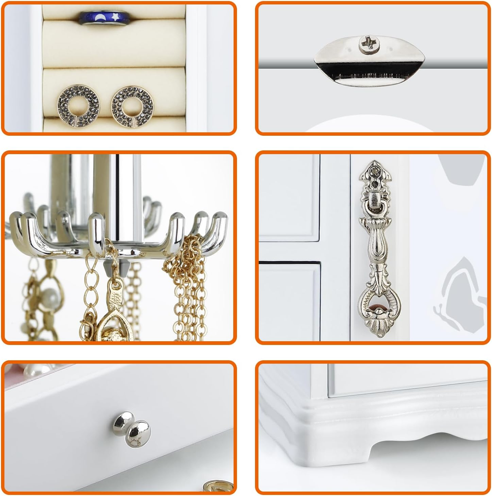 Store New Arrivals Add to Favorite View Feedback Contact Jewelry Box - Made of Solid Wood with 4 Drawers Organizer and Built-In Necklace Carousel and Large Mirror White Description Item model number RR-ZQ-0001 Style Fashion White Number of Items 1 Closure Type Not relevant for this product Country of Origin China Warranty Type Manufacturer Batteries Included? No Jewelry Storage Type Jewelry Box Batteries Required? No Number of Compartments 1 Target Audience Girls Product Dimensions 4.75"D x 9.5"W x 10.75"H Material Wood Number of Drawers 4 Finish Type Painted Item Package Quantity 1 Item Weight 4.3 pounds Finish Painted Occasion Mother's Day, Christmas, Wedding, New Year, Birthday Special Features Solid Wood Special Feature Solid Wood Part Number RR Mounting Type Freestanding Color White Is Discontinued By Manufacturer No Inner Material Velvet Shape Rectangular Recommended Uses For Product Bangle Size 9.3 x 4.75 x 10.75 in Number Of Pieces 1 💝THE ROUND RICH HIGH-GRADE JEWELRY BOX:High-end natural hardwood structure, Anti-Tarnishing velvet lining, exquisite hardware decoration, harmonious color match, highlighting taste and nobility. Packaged in a beautiful GIFT BOX, a gift that women will not refuse! 💝External design:The top and bottom adopt the unique design style of wavy shape, 4-Drawers storage, each drawer has a silver handle. It looks beautiful and easy to open or close the drawer. 360 degree fully open butterfly pattern revolving glass door, adsorption of magnets when closed. The appearance is smooth, clean, comfortable and beautiful. 💝Internal Multifunctional Design:Removable square drawer on the left, large space storage (It can store necklaces, bracelets, earrings, earpins, hairpins, watches, rings and other jewellery accessories). The right side is equipped with stereo lenses, making it easier to choose jewelry to match your own clothes; The top is equipped with necklace carousel horse, which can hang a variety of jewelry; and a multi-layer velvet ring storage device. 💝Size:Jewellery box 9.5" x 4.75" x 10.75" (L*W*H); Drawer Internal Space 3.2" x 3.2"x 1.8" (L*W*H); Mirror Size: 3.5" x 9.25". 💝This elaborate jewelry box will protect all your accessories from scratches and offers a clean storage environment for jewelry. Product Description RR ROUND RICH DESIGN High-end and fashionable wooden jewelry boxes Cabinet three-dimensional design, Selected materials and fine workmanship create a fashionable look adding decor to your home. Wedding gifts, birthday gifts, this is your best choice! Environmental-Protection material, add elegance to this jewlery case, durable. Moisture and corrosion resistant. Velvet liner is moisture and corrosion resistant and offers a clean storage environment for jewelry. Exquisite and removable storage drawers. 8-claws Necklace hook capable of rolling and rotating freely. Classic and elegant bronze door handle Multi layer velvet ring slots ABOUT US We offer the best prices around on high quality products. Our E-store includes media such as books, movies, music and games while offering electronics, toys, sporting apparel, clothing, tools, general home, garden items and more. SHIPPING We are always working hard to ensure your package arrives as soon as possible. Please understand that some factors like weather, high postal traffic, and the performance of shipping companies are outside of our control. We offer free shipping to the lower 48 states and ship within 2 business days of payment, usually sooner. We do not accept P.O. Boxes. Please provide a physical address. For shipping outside of the continental USA, we only use eBay's Global Shipping Program.The item is shipped to KY and then sent to the rest of the world. International customers are responsible for all duties and taxes. Continue to check out in order to calculate costs for shipping the item to your country. Messages regarding eBay's Global Shipping Program MUST be directed at eBay EXCLUSIVELY. RETURNS We offer a 30-Day Return Policy on items which you are not completely satisfied with. You have the option for a full-refund or an exchange of the item. No returns are available on items shipped outside of the USA. PAYMENT We accept PayPal. CONTACT US This page content is yet to come Please ad us to your favorite seller and visit again later Thank You CUSTOMER SATISFACTION We try our very best to make sure every customer is completely satisfied. If there's a problem, message us! We're happy to help. WE ACCEPT Copyright © 2021 AutoDS. | All Rights Reserved