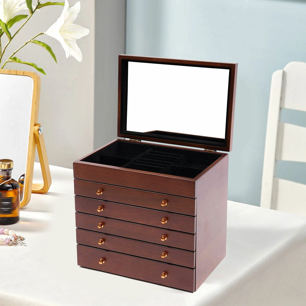 Jewelry Box Organizer for Women Girls Large Jewelry Storage Case with Drawers🔥 Specifications: Colors: white/ Walnut Color Layer: 6 layers Types: without mirror Material: Wooden Sizes: 31x20x24.5 cm/12.2*7.9*9.6 inch Features: - This is a retro wooden jewellery box. Fashionable and practical. - Made of high quality wood. - Can hold many kinds of jewelry. - No need to assemble. - A great gift for your mother/girlfriend/sister. Package included: 1 x Wooden Jewellery Box Payment Delivery details Terms of sales About us Contact us Payment We accept ebay payment 。 Fees such as import duties, taxes are not included in the item price or shipping costs. These charges are the buyer's responsibility. Delivery details Shipping: 2-9 working days to: USA Terms of sales We maintain high standards of excellence and strive for hundred percent customer satisfaction. Feedback is very important to us. We hope that you contact us immediately before you give neutral or negative feedback, so that we can address your concerns. It is impossible to address issues if we do not know about them! About us Your satis faction is our ultimate goal. We work hard to earn your trust and future business. Our certified technicians have tested each item before shipping. The unit comes with 1 year limited warranty on all manufacturing defects. a) If you receive a defective item, you may return it or ask for a discount. Please contact us within 14 days after you receive the package. b) What you returned must be intact and in its original packaging as re? u. Customer is responsible for shipping costs of the returned item. c) We will cover the cost of shipping back t with the shipping rate indicated in the registration page. We will send you a new unit or refund the full payment you paid. Thank you. Contact us Business Hour Business Hour: Monday To Friday: 8:30 AM to 5:00 PM (Beijing China time) Due to time zones, our reply to your questions may not be immediately. But within above working time, we will reply your email within 24 hours. If it's non-workdays, please kindly be patient and wait till Monday. Please contact us with ebay message. Please feel free to contact us if you have any questions. Monday To Friday: 8:30 AM to 5:00 PM (Beijing China time) Due to time zones, our reply to your questions may not be immediately. But within above working time, we will reply your email within 24 hours. If it's non-workdays, please kindly be patient and wait till Monday. Please contact us with ebay message. Please feel free to contact us if you have any questions.