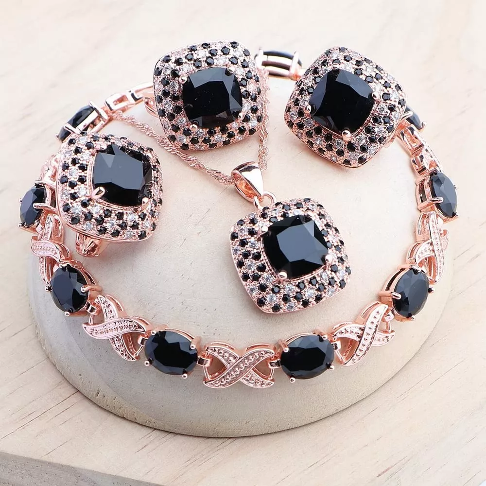 Jewelry Set for Women,Cubic Zirconia Tennis Necklace Ring Clips Earring Bracelet set,Wedding Birthday Anniversary Engagement Gift For Wife Girlfriend Best Friend Bridal Product Details Color: Rose Gold-Black Brand: BROCLY UPC: 751501758371 EAN: 0751501758371 MPN: Does not apply Department : womens Date First Available : March 8, 2023 Brand, Seller, or Collection Name: BROCLY Metal: platinum plated brass Material: Platinum, Rose Gold, Yellow Gold Gem Type: Cubic Zirconia Clasp: Lobster Clasp