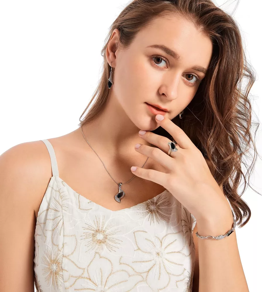 Jewelry Sets for Women Necklace Dangle Earrings Adjustable Ring Bracelet Costume Luxury Set for Women Girl Mom Wife Girlfriend Best Friend Ladies Bride bridesmaid Gift… Product Details Color: White Gold-Black Brand: ZCGJWE EAN: 9331739344686 MPN: Does not apply UPC: Does not apply Department : womens Date First Available : February 24, 2023 Brand, Seller, or Collection Name: ZCGJWE Metal: white gold plated brass Material: Copper Gem Type: Created Sapphire Setting: Prong Setting Clasp: Lobster Clasp Ring size: adjustable