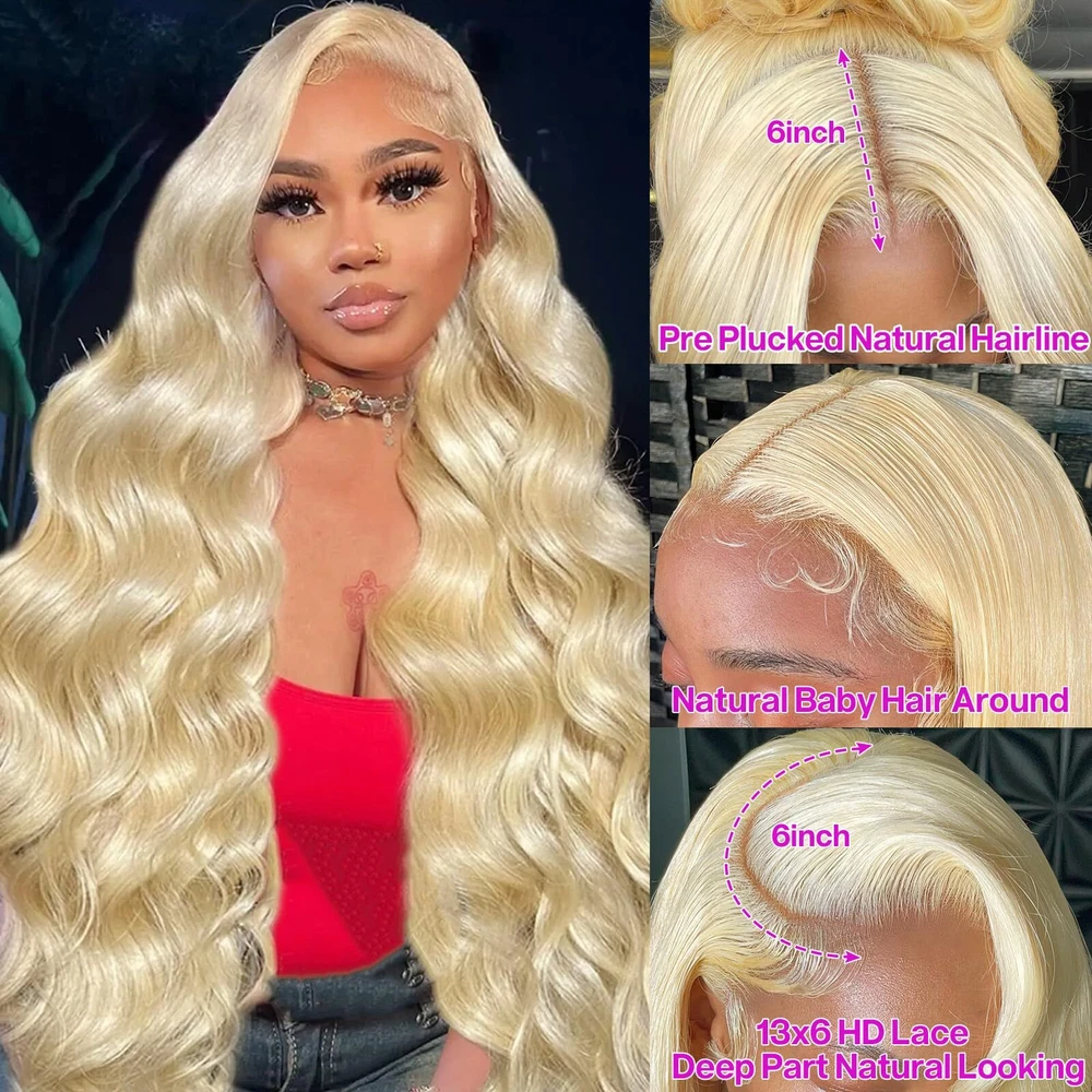 613 Lace Front Wig Human Hair Material:Blonde wig human hair made of Hight quality unprocessed Brazilian virgin human hair, the hair cut from young donor, healthy and vibrant, comfortable against skin.13x6 blonde human hair wigs HD transparent lace 200% density, full and thick, soft and natural, comfortable and vibrant, no shedding and tangle free Blonde Lace Front Wigs Human Hair Quality: Blonde body wave lace front wigs human hair , true to length, full and thick, shedding free, tangles free, no smell, soft, bouncy, can be dyed&bleached, straightened and restyled, can be side part, middle part, high ponytail& bun, styled as you like 13x6 Blonde Wig Human Hair Cap Size: 613 13x6 lace front wigs human hair with 22.5" medium cap (average size) with 4 combs and adjustable straps, durable & easy to adjust, fits for most customers heads perfectly. HD lace wigs human hair pre plucked with more baby hair around makes human wigs hairline more natural and beautiful 613 Body Wave Lace Front Wigs Human Hair Occasions: 613 wig can be dyed any color wigs human hair, and has a very natural look that is suitable for all occasions such as daily life, church, parties, weddings, dates, graduations, etc. In addition, this 613 blonde wig can be used as a gift for your own parents and friends on various holidays! Blonde Lace Front Wigs Human Hair Service: Professional Amazon logistics.We have a professional after-sales team, 24-hour customer service online.Our blonde human hair wig offering a secure and personalized wearing experience,if you have any questions about our 613 lace front wigs human hair, we will solve it for you in time