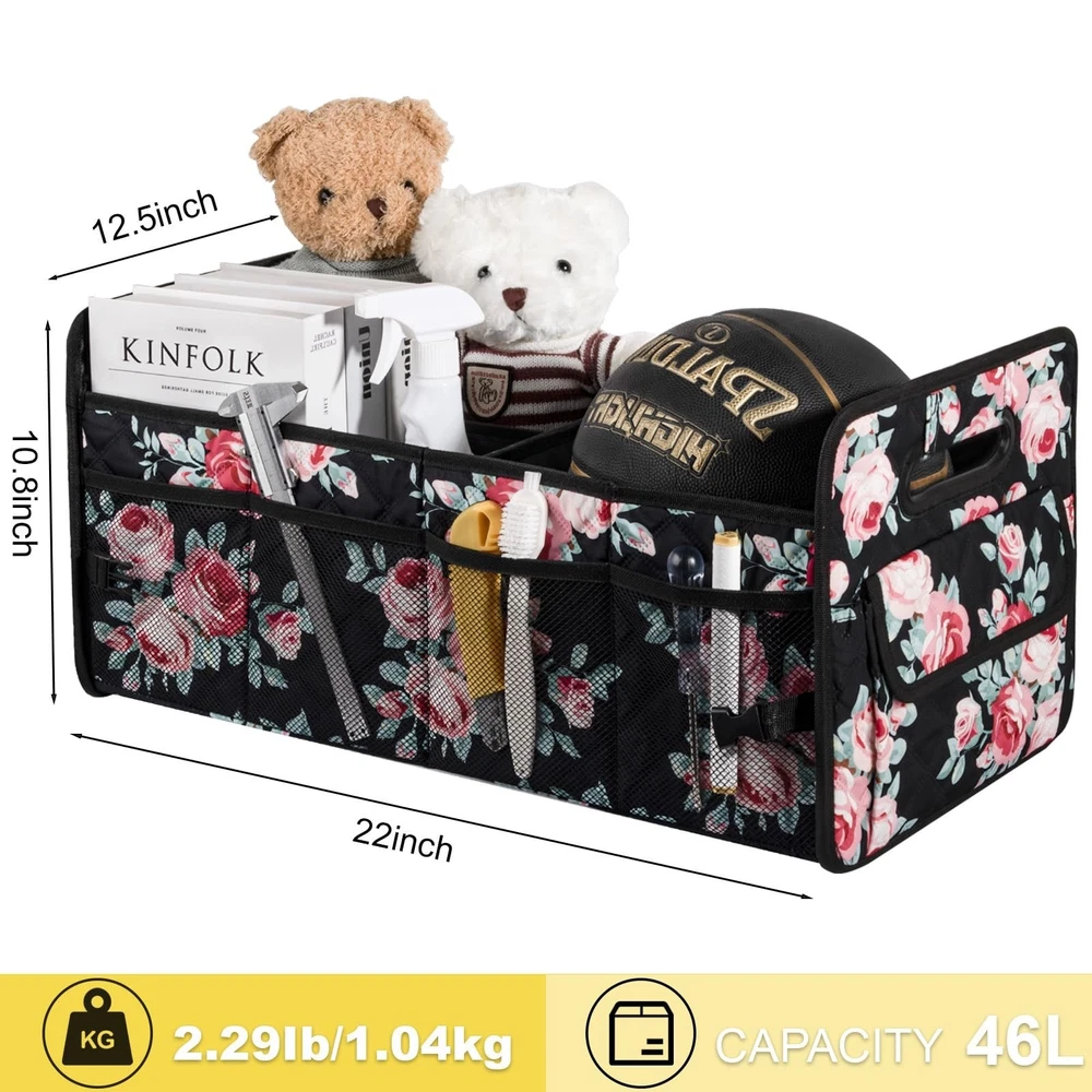 JiatuA Car Trunk Organizers and Storage for SUV, Collapsible Multi Compartment Container Box Adjustable Car Accessories for Women Men, Black Floral Product Details Size: Standard Color: Black Floral Brand: JiatuA MPN: Does not apply UPC: Does not apply EAN: Does not apply Specific Uses For Product: Automobiles, Cleaning Supplies, Home, Supermarket Shopping, Outdoor Material: Polyester, Plastic Special Feature: Portable, Foldable, Adjustable Color: Black Floral Brand: JiatuA Finish Type: Lacquered Product Dimensions: 13.7"D x 11.6"W x 1.8"H Shape: Rectangular Specific Uses For Product: Automobiles, Cleaning Supplies, Home, Supermarket Shopping, Outdoor Material: Polyester, Plastic Special Feature: Portable, Foldable, Adjustable Color: Black Floral Brand: JiatuA Finish Type: Lacquered Product Dimensions: 13.7"D x 11.6"W x 1.8"H Shape: Rectangular Item Weight: 2.44 pounds Special Features: Portable, Foldable, Adjustable Date First Available: March 5, 2025 Durability: made of sturdy, resistant 600D Oxford polyester, that can withstand the rigors of daily use, also is waterproof and easy to clean. The side and base is both reinforced with sturdy panels that prevent sagging, even when the compartments are filled with heavier items. Features: measures 22" L x 12.5" W x 10.8" H, features multiple compartments of varying sizes, which is ideal for sorting and storing different types of items. Large capacity space can meet your daily life needs of organizing and storing various items, easy to access. Adjustable: with adjustable dividers, you can customize the space for different trips and uses. This flexibility is particularly useful when transporting items of different shapes and sizes, ensuring that everything stays in place during transit. FOLDABLE: the organizer can be easily folded down to a compact size, making it convenient to store without taking up much space. Perfect fit for those who with limited trunk space or those who only need the organizer occasionally. Multifunctional: fits perfect in the back, suitable for any car, such as suv, cargo, sedan, truck, jeep, minivan, van etc. Help you keep cleaning essentials, tools, car supplies neatly arranged in one place, maintaining clean car interior, never roll around everywhere.
