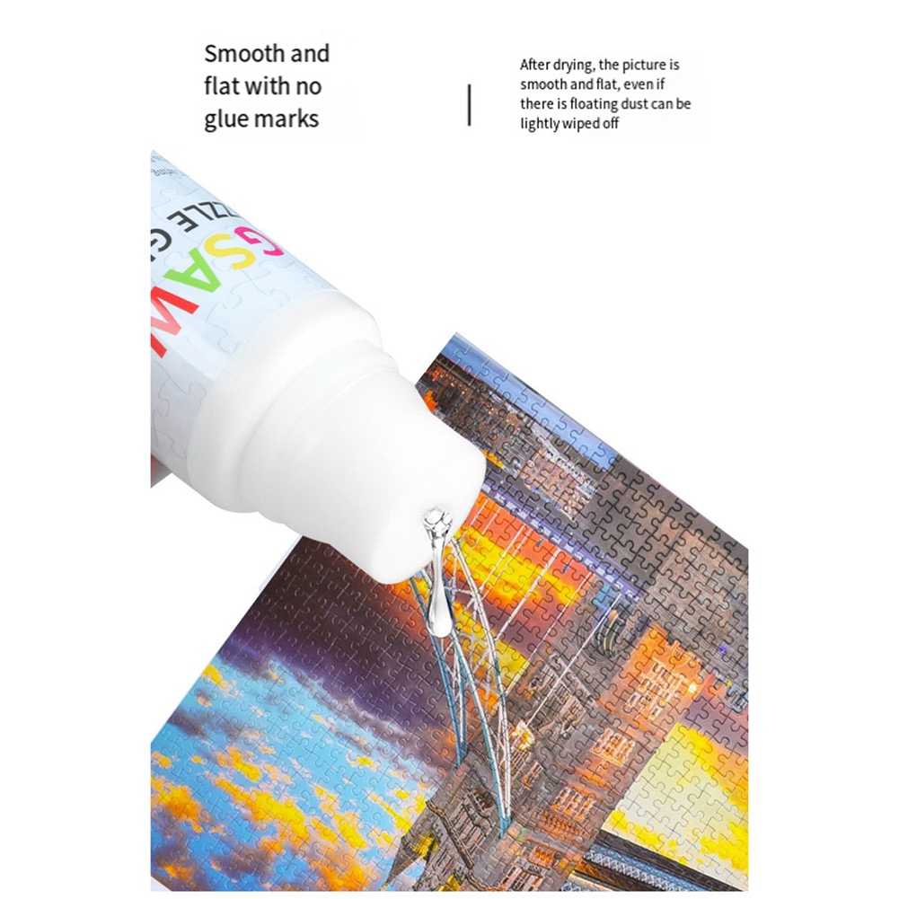 Jigsaw Puzzle Glue, Jigsaw Glue with Sponge , Non- and Quick Dry9889 [ Puzzle Glue] High quality, 100% non-, and compliant with testing. 100% non-, environmentally friendly, and water-based, which is safe for both adults and children. [ Large Capacity ] With a large capacity, puzzle pieces can be pasted to avoid glue waste. After applying adhesive, your puzzle/puzzle will be stronger, smoother, and more shiny. Our glue leaves no marks and is anti animal and antioxidant. Easy to use: Upgrade the multi in one design with a sponge. The puzzle adhesive is applied directly from the bottle with a dispenser sponge to the of the image, evenly distributed to dry it, and then reused on the back. (Note: When applying with a sponge tip, please pay attention to allowing the glue to penetrate into the gaps, which can make the puzzle more solid. It is recommended to dry the glue for 1-2 hours and determine the actual situation at a specific time based on the puzzle). Glue is used for a wide range of applications. This puzzle glue is clearly very suitable for most materials, such as paper puzzles, wood, books, pictures, and diamond drawings. At the same time, puzzle glue can permanently store and repair assembled puzzles, and then hang them as decorative elements, making it an important choice for manual activities in families. Decoration: Use our puzzle glue to repair difficult problems and hang them up as a fashionable decoration. Attention: Do not eat this product and keep children under 3 years old away from it; After use, please tighten the lid and add some paper at the bottom when using the puzzle. size: 150ml / 120ml / 60ml / 240ml Material: plastic colour: As Shown Package Contents: 1 x Puzzle Glue Only the above package content, other products are not included. Note: Light reflection and different displays may cause the color of the item in the picture a little different from the real thing. The measurement allowed error is +/- 1-3cm.