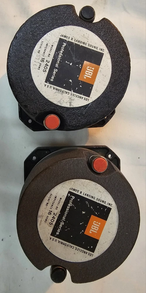 This is for a set of JBL 2405 Tweeters with new voice coils. Shipping is to the United States only. We have one of the west coast's largest collections of vintage home electronics. Tube amps, over 40 receivers, 60 pairs of brand name speakers, over 70 turntables, subwoofers, accessories, cables, open reels. Let us know if you are interested in becoming the new owner of the whole collection or part of it.